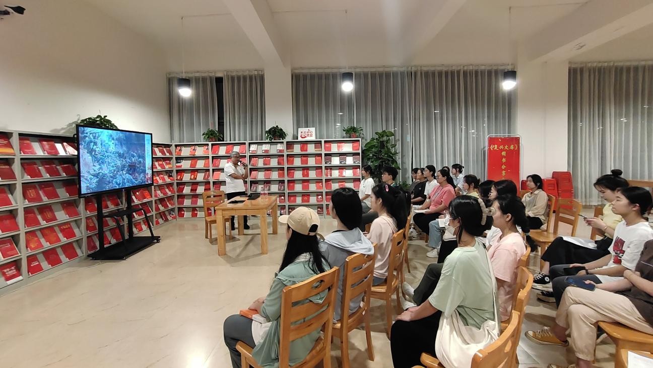 4月19日下午7:30,红色专题知识系列讲座第五场之平型关大捷在西校区图书馆三楼开讲,由马克思主义学院院长姜献生主讲。(毛琦帅摄)