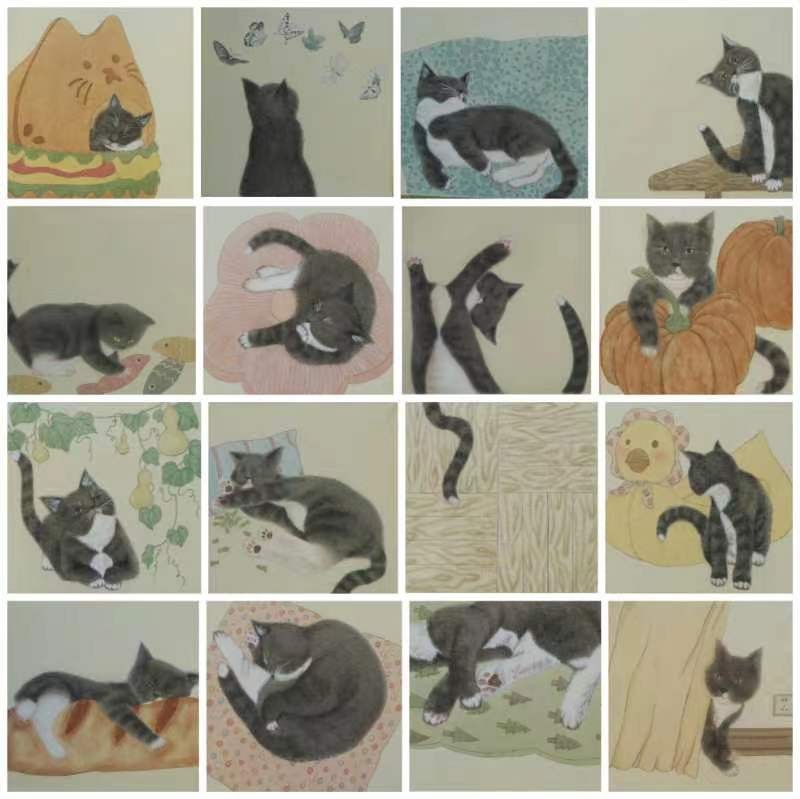张馨萍 《猫咪日记》 170cm*170cm 绢本设色 2024