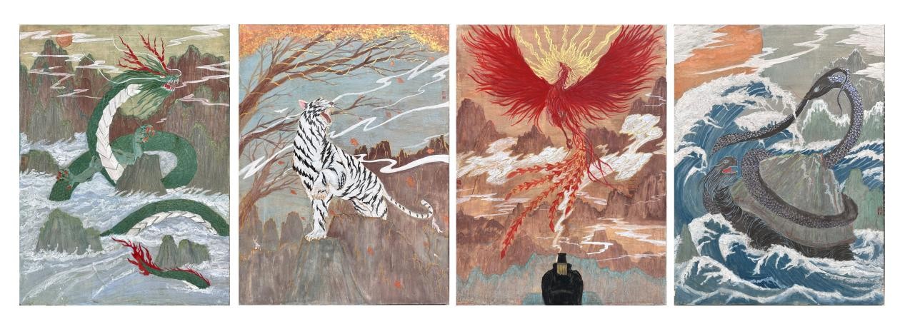 张全泰 《四方神兽》 56. 7cm*77. 8cm*4 纸本设色 2024