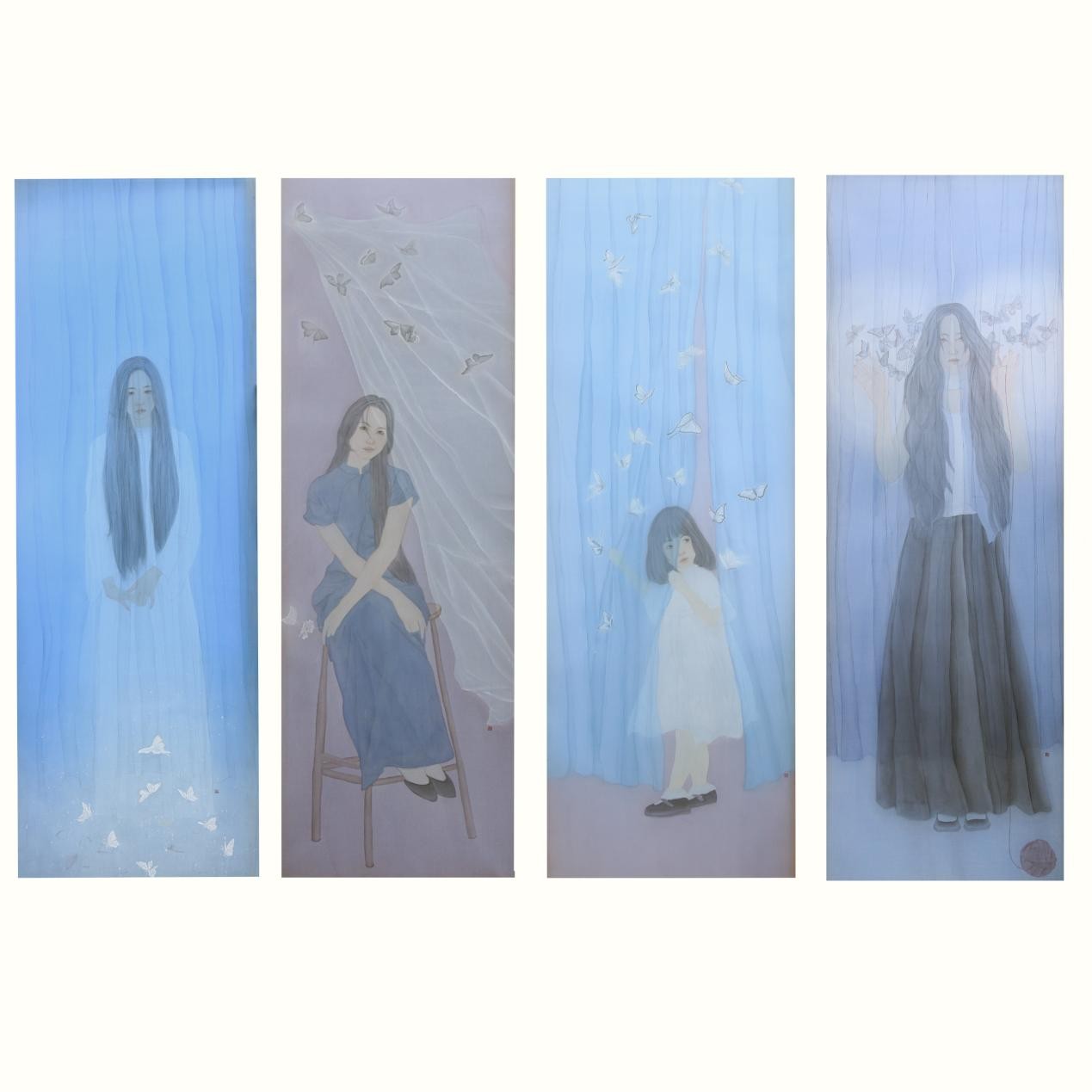 朱琳 《高度敏感》系列 205cm*75cm 绢本设色 2024