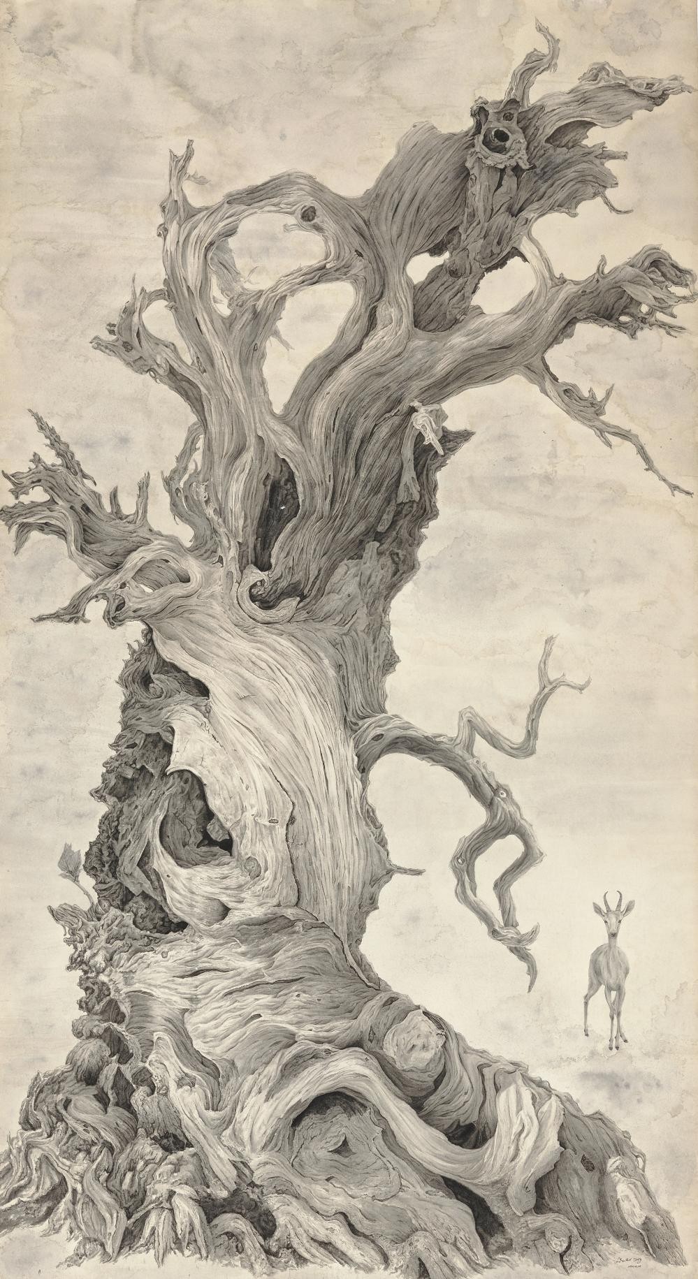 刘安同 《胡杨树的守望》 240cm*125cm 纸本设色 2024