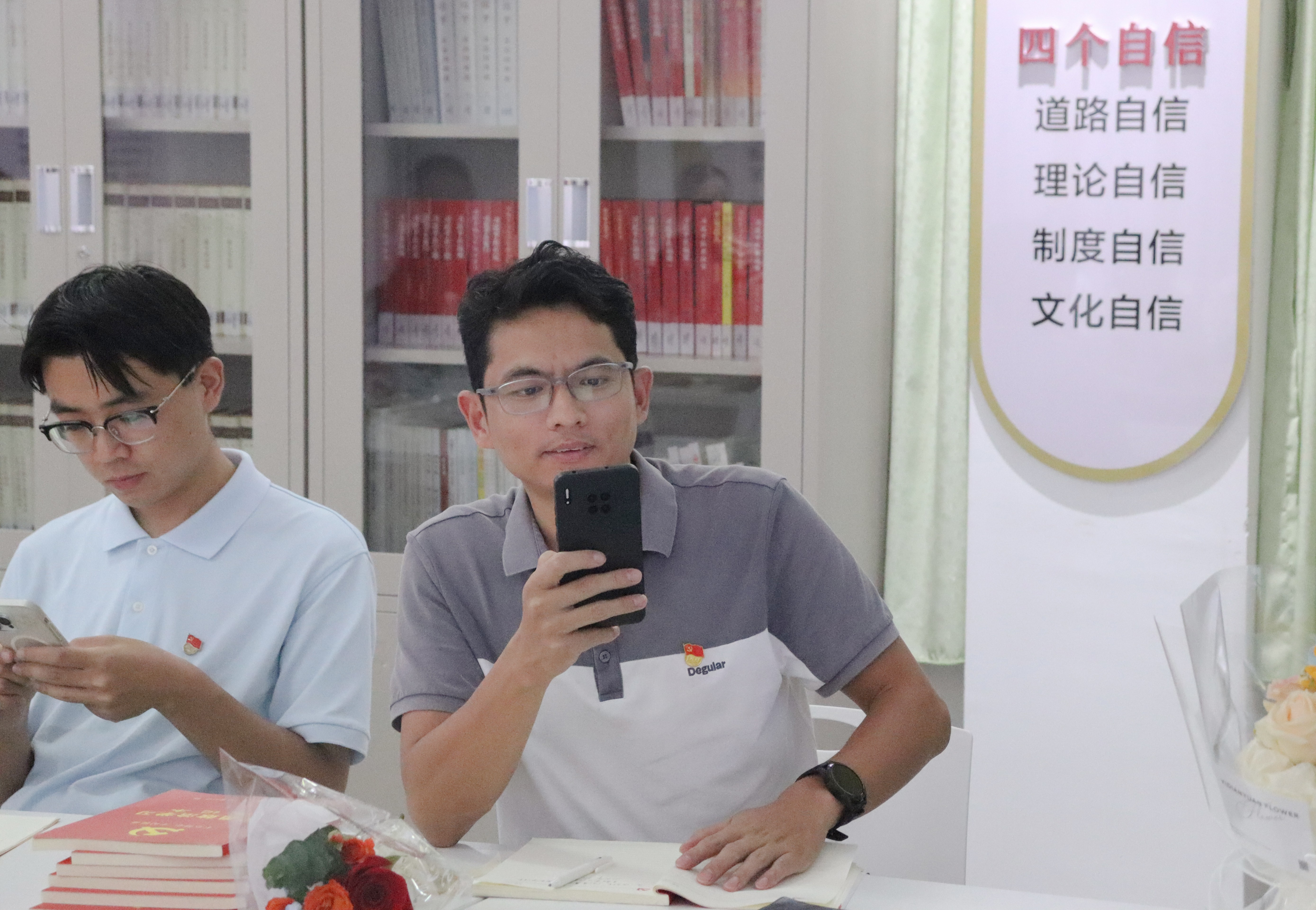 活动尾声,全体教师围绕“中央八项规定精神”“教育家精神”“思政课教师应知应会知识”等内容,利用学习通平台进行了紧张激烈的有奖知识抢答比赛。大家积极响应、踊跃作答,在紧张热烈的互动中,进一步巩固了理论知识,强化了廉洁从教意识与思政课教师的责任担当,为本次主题党日活动画上了圆满句号。另外,本次主题党日活动还给每一位教师送上了鲜花和马克思主义经典著作书籍作为节日的慰问。