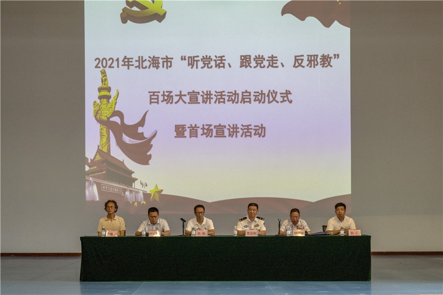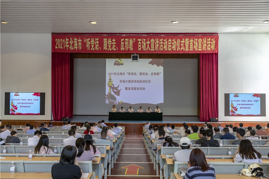 6月21日上午,北海市“听党话、跟党走、反邪教”百场大宣讲活动启动仪式暨首场活动在我校西校区大礼堂召开。