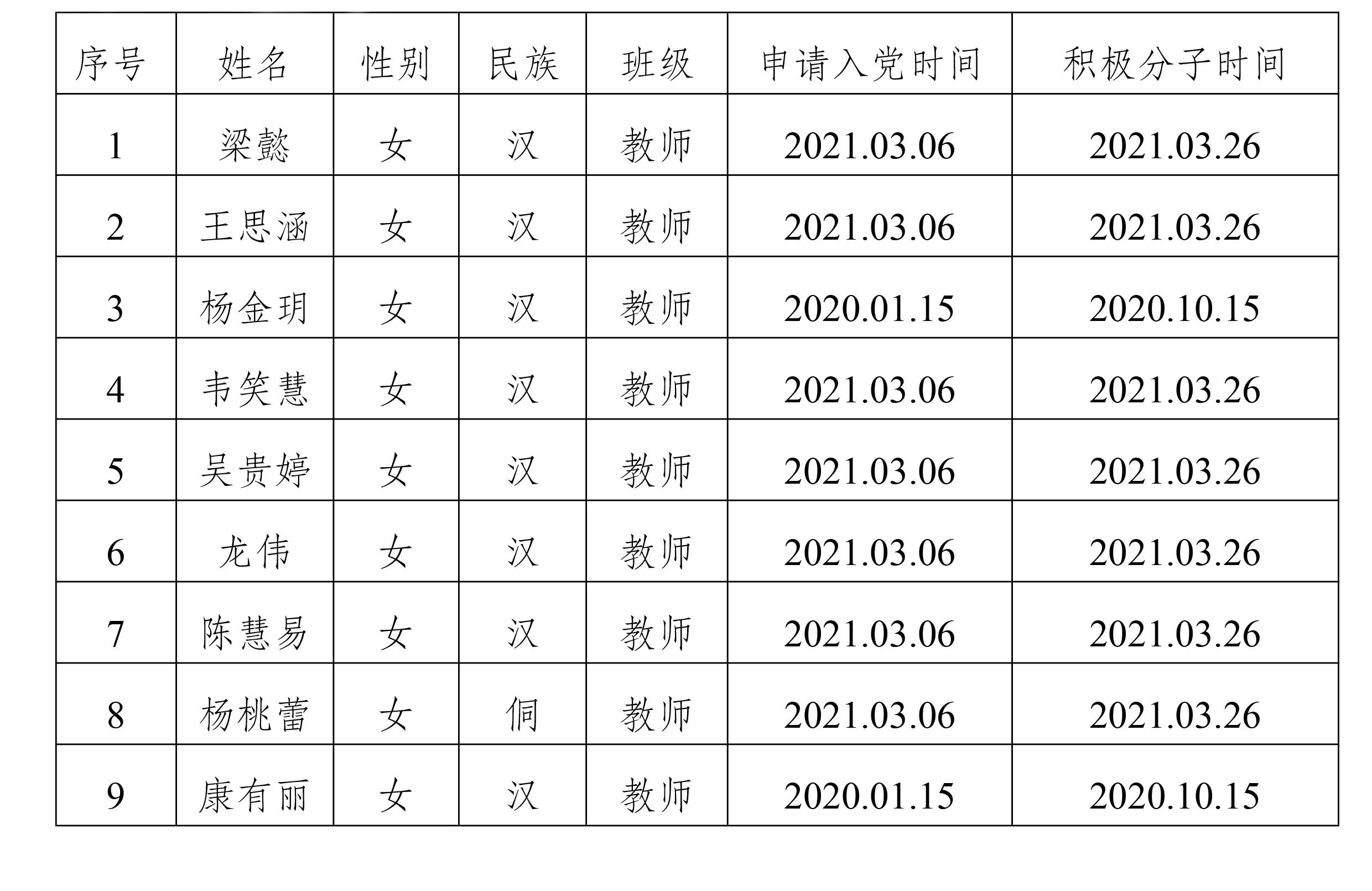 关于拟将梁懿等8位同志列为发展对象人选的公示