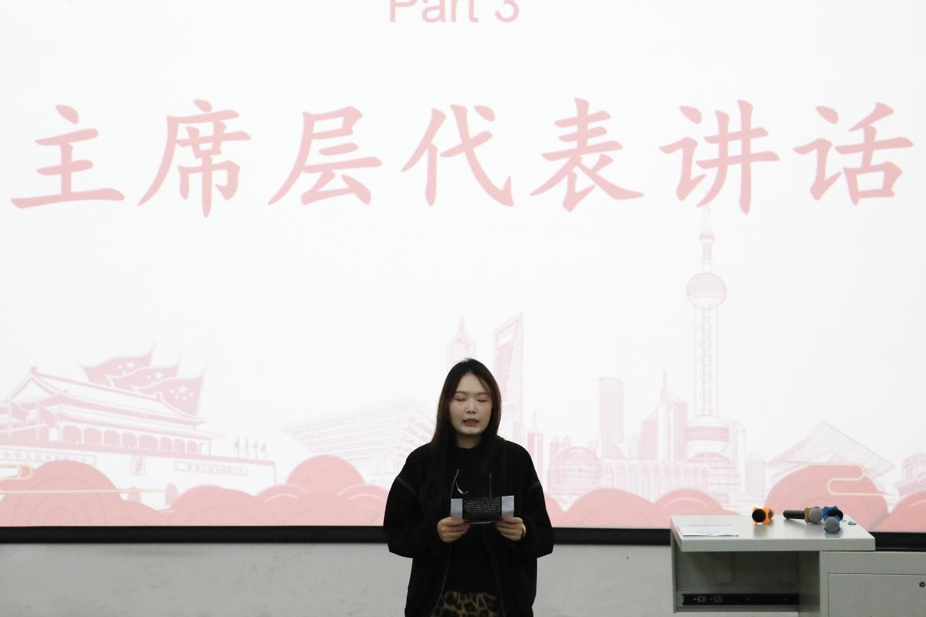 会议的第二项进程由学生代表依次分享感悟,首先由宣传部主席层胡婷烨开始,分享了锚定工作定位,强化组织效能,以更高标准、更实作风推进各项工作。部长层王荣禄,汤文雅分享了现阶段的工作,以及关于后续重点,更好的帮助部员们明确重点和目标。干事层沈俊,赵子硕分享了作为基层干事,需要保持严谨的工作态度,主动学习,积极配合。