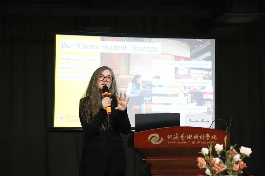 在《创意与设计——切斯特大学分享》的专题讲座中,伯纳丁·穆雷院长阐述了创意与设计在当代社会中的重要性。