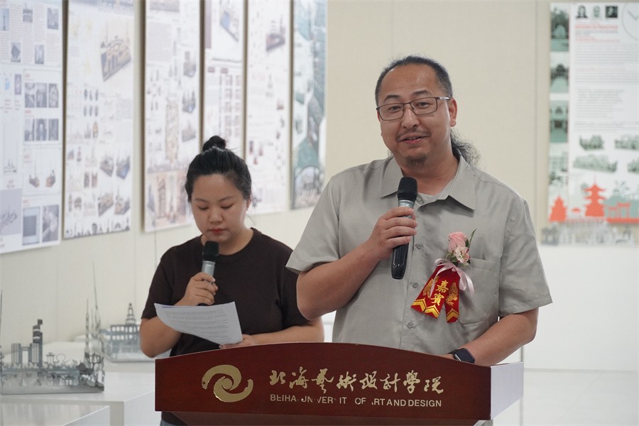 建筑与环境艺术学院院长张春东回顾了学校与佩奇大学自2017年以来的合作历程,介绍了此次展览的基本概况。他强调,此次短期课程不仅使学生学习到了先进的设计理念,还增进了对不同文化的了解。他表示,希望通过两校合作与交流,能够培养出更多眼界开阔、具有国际视野的设计人才,推动建筑与环境设计领域的发展,同时也表示学院将继续努力,为学生提供更多的学习机会和更优质的交流平台。
