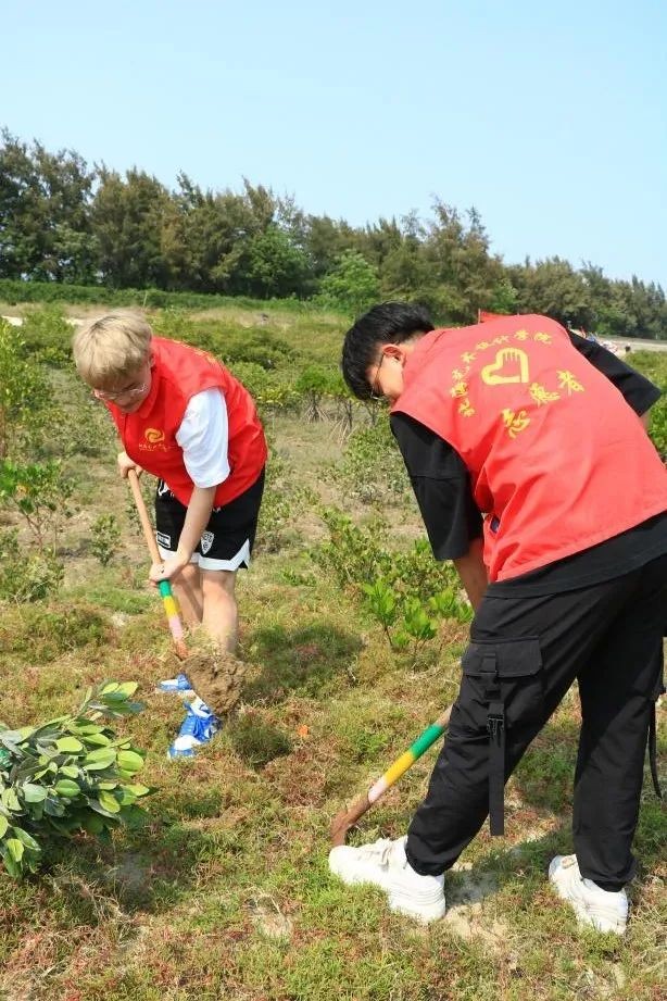 活动进行到一半,许多志愿者大汗淋漓,但脸上挂着的笑容无不表现出他们对植树活动的热情与活跃。为了北海青年红树林生态得到更好的保护和向善发展,志愿者们无私奉献,吃苦耐劳。下一年北海青年红树林新生的小树将是青年志愿者们对于春天最浪漫的回馈。