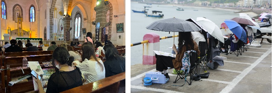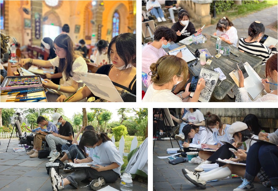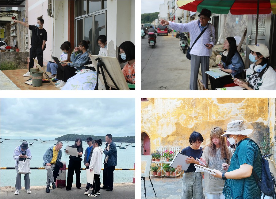 在各位领导和教师的带领下,学生们用手中的画笔共同记录下涠洲岛的自然美景与人文景观。与此同时,加深了同学们对涠洲岛特色民俗风情与历史渊源的了解与认识,也让学生们领悟到了户外写生的意义,从而更好的进行创作。