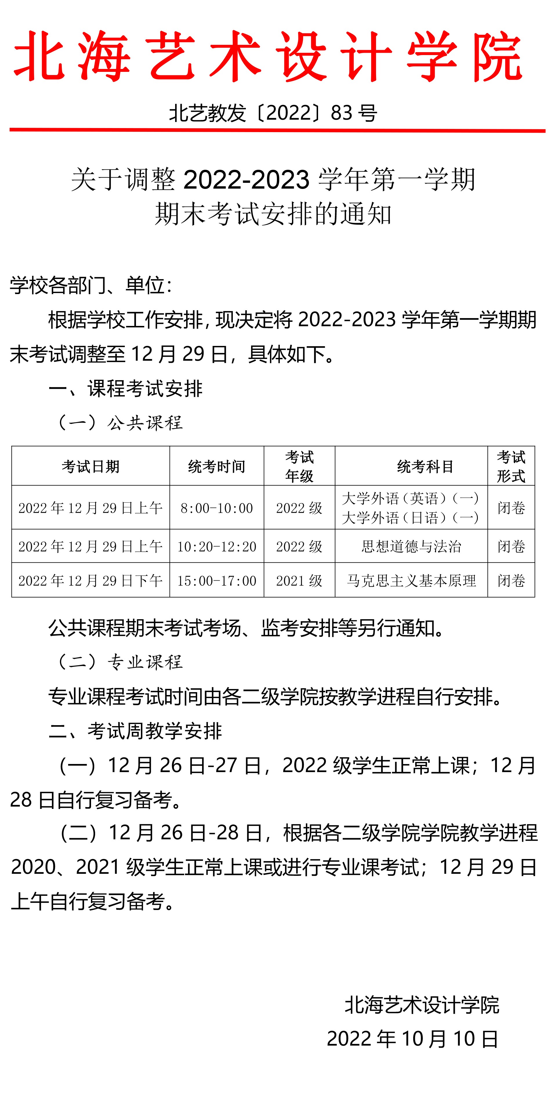 关于调整2022-2023学年第一学期期末考试安排的通知