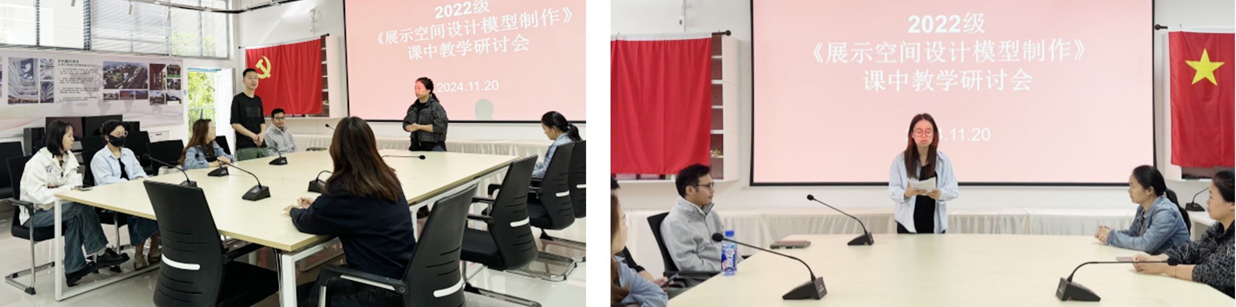 2024年11月20日,我们迎来了《展示空间设计模型制作》课程的重要里程碑——模型工坊实践活动的正式启动。在当天的中期会议上,课程组教师和学生共同回顾了课程进度,并对未来的教学安排进行了深入讨论。经过大家的共同努力,各班级的前期项目设计已圆满完成。