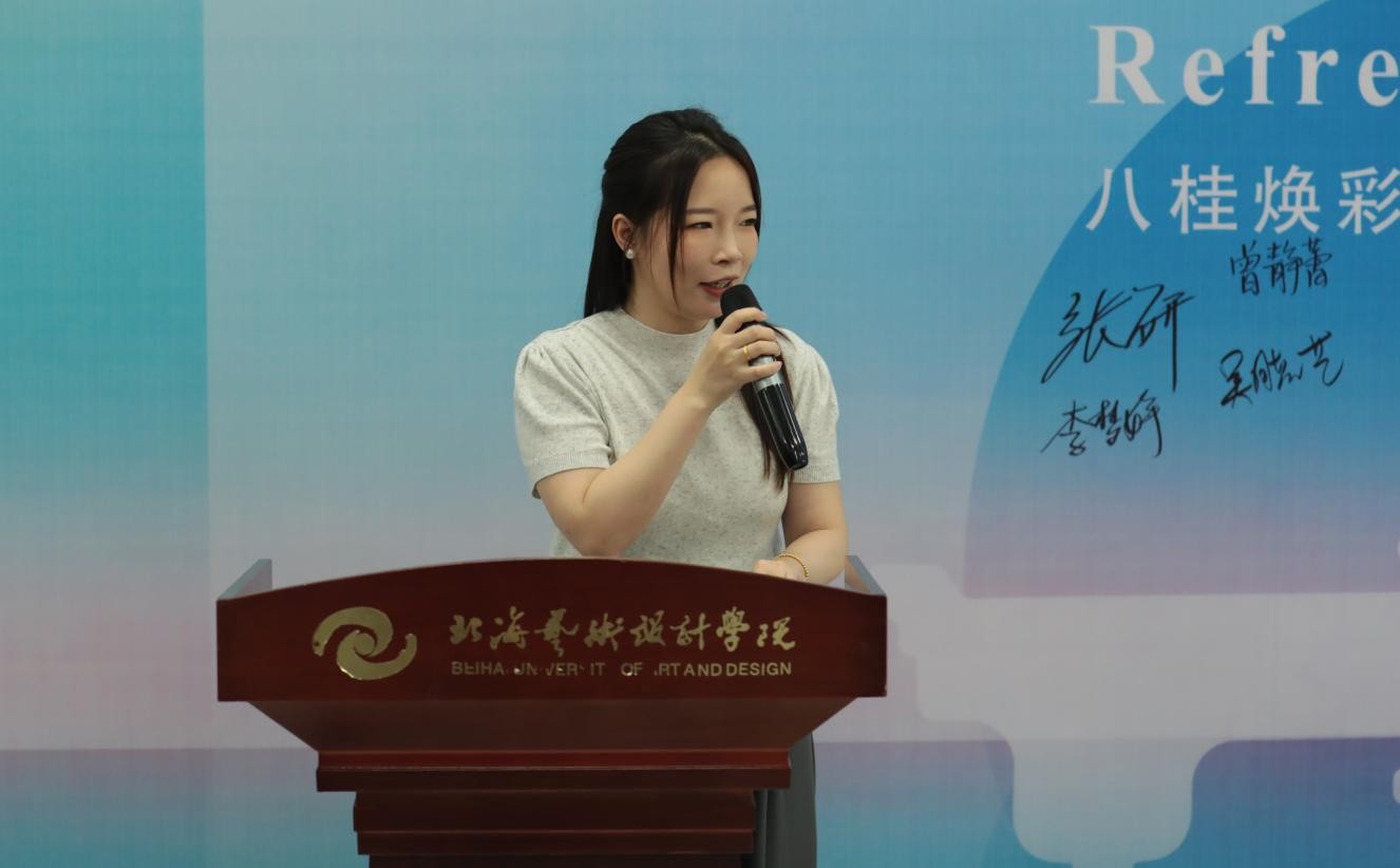 课程负责人郭蕙静在介绍中指出,《家具设计》作为创新创业必修课,引导学生以广西地域文化为土壤,深入挖掘壮锦纹案、侗族榫卯等非遗技艺基因。学生通过对旧家具、旧材料的再造,将传统文化符号融入现代审美与实用功能,创作出96件蕴含“可持续”理念的实体家具作品。现场通过家具实物与创作展板,立体呈现了从文化解码到材料再生的完整历程。