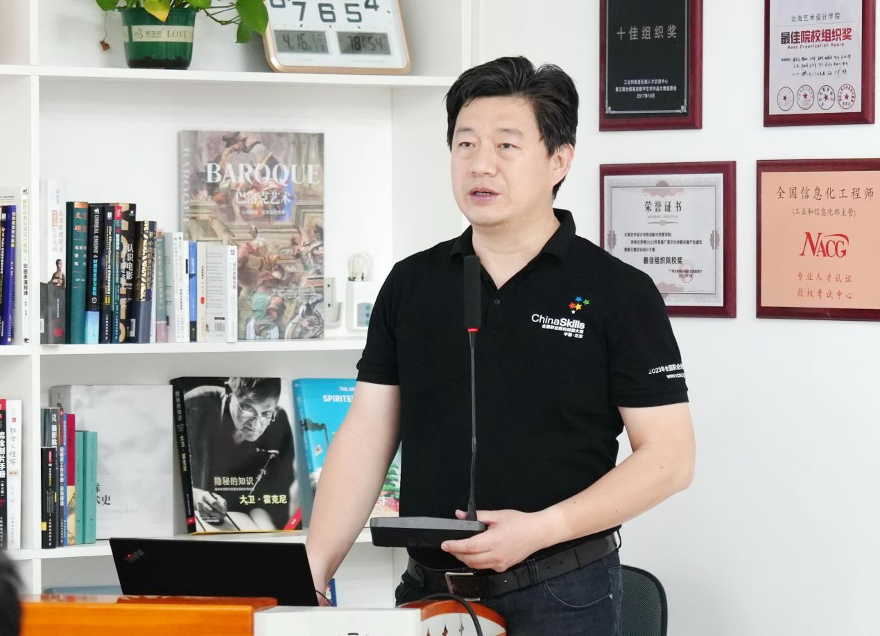 座谈会上,严晨教授对北京印刷学院历史沿革进行了简要介绍,分享了国家级一流专业建设情况,并结合其个人经验,对数字艺术领域人才培养策略进行了深入探讨。他强调了建设优秀教学团队的重要性,以及打造一流专业的必要性,也提出专业教师需不断累积丰富的教学成果,为高精尖学科的持续发展提供有力支撑。同时,严晨教授以自己团队的建设实例为引,深入探讨了从“数字”到“数字艺术”的发展过程,尤其是在人工智能蓬勃发展的背景下,如何凸显人的价值。
