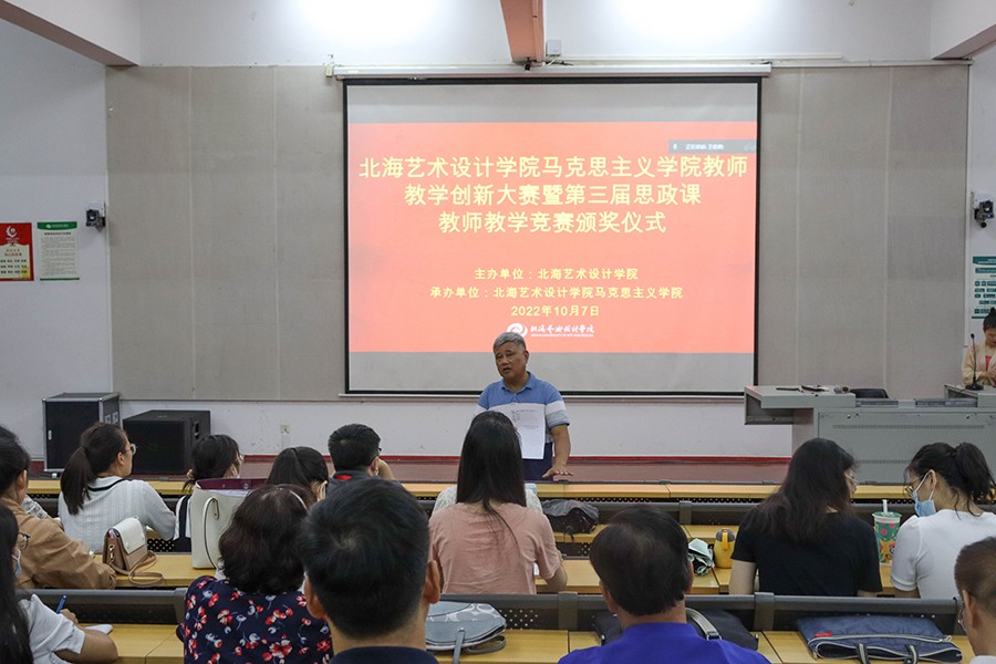 秋高气爽,云淡风轻。10月7日下午,北海艺术设计学院教师教学创新大赛马克思主义学院初赛暨第三届思政课教师教学竞赛颁奖仪式在西校区伦理楼107举行。