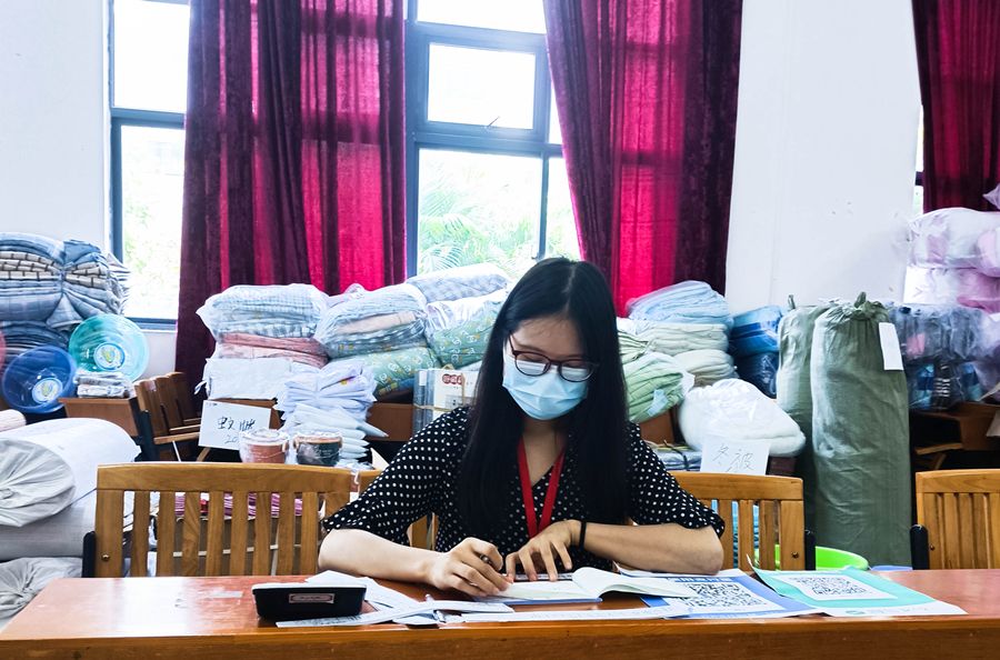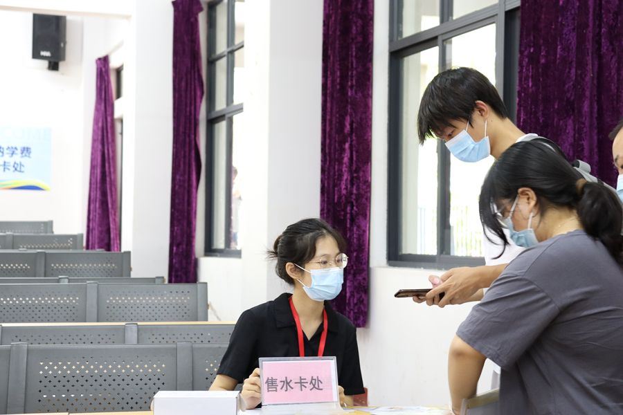同学,办水卡吗?同学,来来,这边也可以办理校园一卡通!同学,请问是学费刷卡吗?同学,过来领取中秋礼品:一盒月饼、一箱海鸭蛋!同学,你好,需要购买生活用品吗?家长,您好,请问有什么可以帮助您?......办水卡、办校园一卡通、学费刷卡、发放中秋礼品、协调安排宿舍、卖生活用品,这些就是马克思主义学院迎新党员教师的主要工作任务,他们工作中一个个温暖的声音和一张张热情的笑脸,在热闹的校园里格外突显。