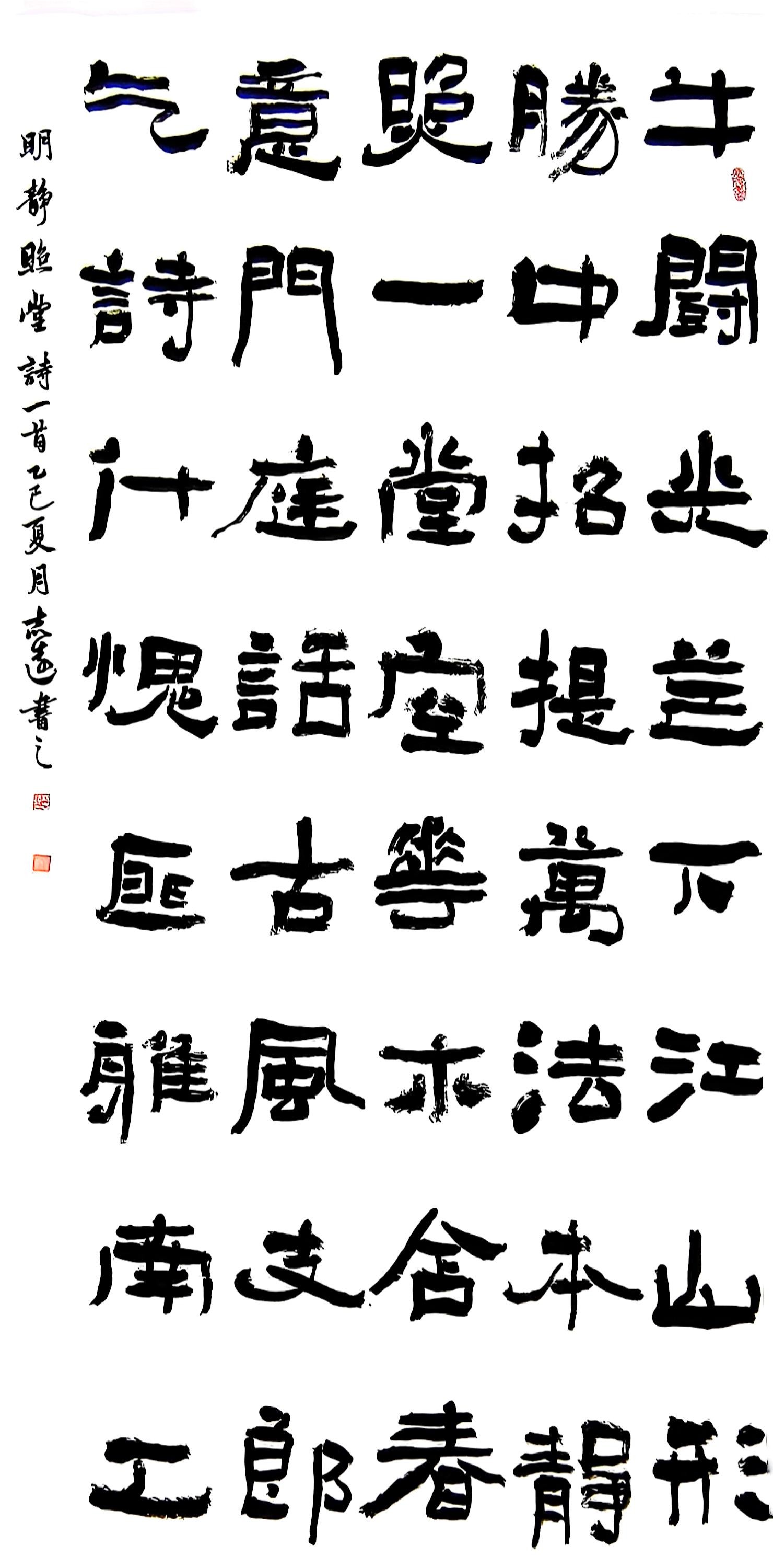 杨志远的书法启蒙始于家庭艺术熏陶,“幼承庭训”的传统教育模式不仅赋予其基础技法认知,更在潜意识中植下对传统书法的敬畏。高中阶段,他在应试与艺术的双重诉求下系统研习隶、楷、行三体,从隶书的蚕头燕尾、楷书的中正平和到行书的流美畅达,构建书体框架体系,领悟"技进乎道"的艺术特质。初入高校后,其高中程式化训练被大学开放性教学体系解构:黎东明教授、喻广林书记等构建的教学体系以文化浸润为核心,通过文字学溯源、书论典籍研读、篆隶古法摹习等课程,将书法置于传统文化坐标系中深化认知,实现从技法训练到审美培育的跃升。