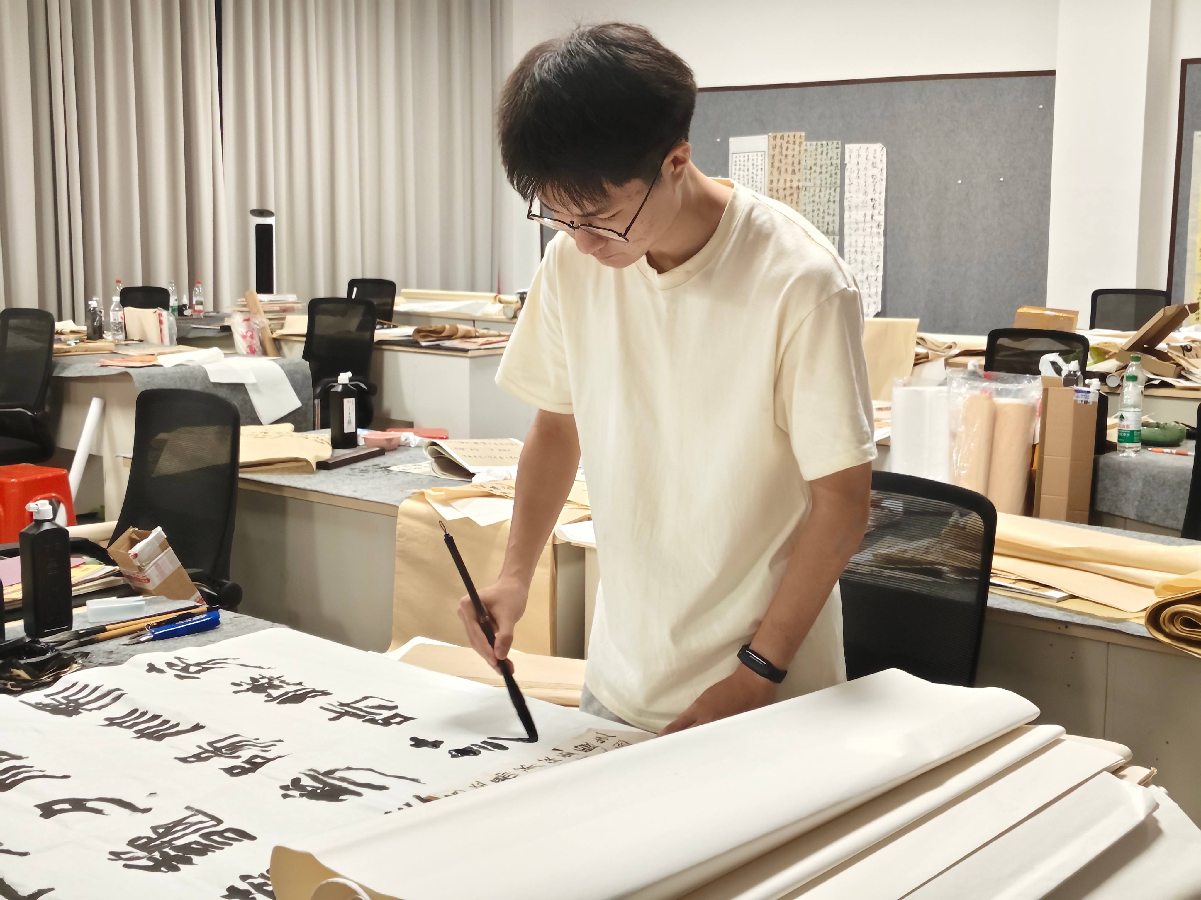 对于当代与传统书法的差异,周煜恒亦有着清醒认知:传统书法侧重实用,当代书法则适配展厅需求,成为以汉字为载体的艺术创作。他相信,未来书法将通过全国书展、学术批评等机制,推动创作者深化文化认知、拓宽传统取法路径,实现雅正书风与多元表现的并存。