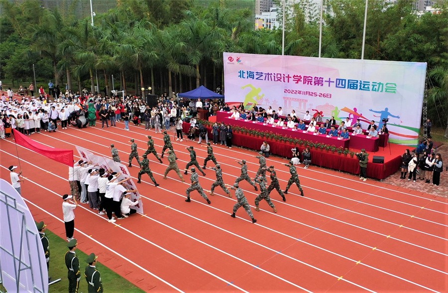11月26日上午,迎着十一月的海风,伴着激昂的运动员进行曲,北海艺术设计学院第十四届运动会于学校西校区操场顺利开幕。学校全体党政领导班子出席开幕式,党委书记张阳宣布开幕,各二级学院、相关部门负责人参加开幕式。开幕式由副校长陶立阳主持。