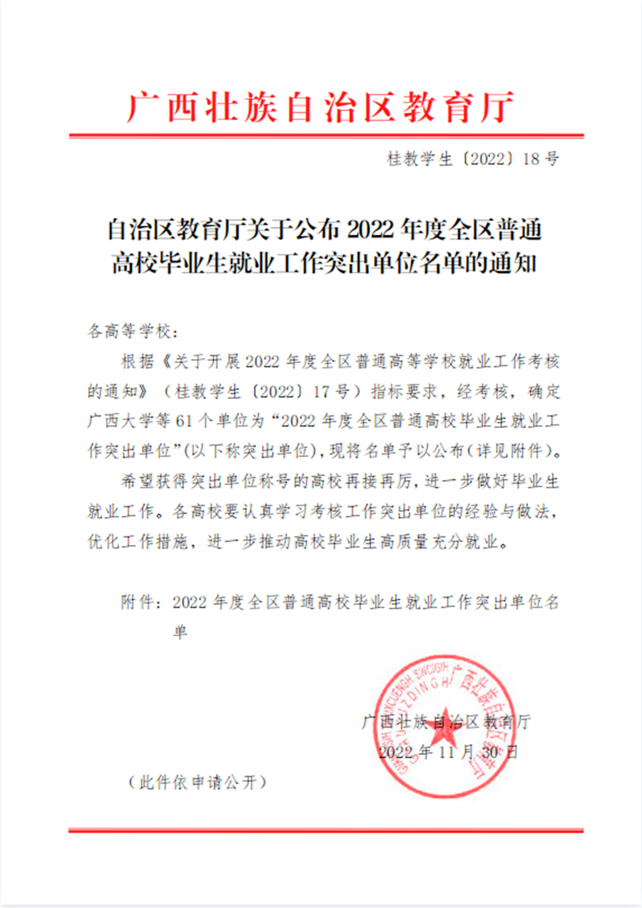 喜报 | 我校荣获“2022年度全区普通高校毕业生就业工作突出单位”称号
