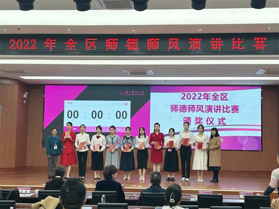 3月17日-19日,由广西壮族自治区教育厅主办的2022年师德师风演讲比赛在广西师范大学育才校区举行,本次演讲比赛以“学习党的二十大精神 培根铸魂育新人”为主题。我校人文教育学院学前教育专业2003班隋媛、2101班徐梦璐参赛,其中隋媛同学凭借稳定发挥,在全区63名选手中脱颖而出,进入决赛并喜获高校师范生组三等奖的佳绩。