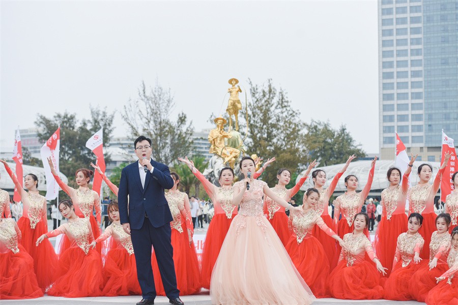 北海旅游集团有限公司副总经理李小军为沙雕代表队授旗