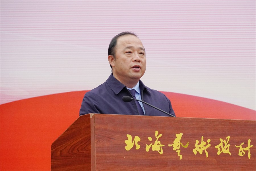 动员大会上,我校卢新华校长向北海海城区人民武装部领导授军训团团旗并宣布2023级学生军训开训。(周小琪、郭松、王弘武、周雨晨、高闻雨、相恒佳/摄)