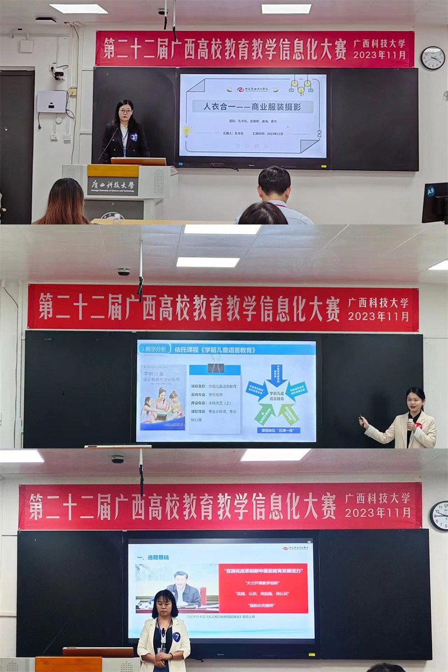 此次教育教学信息化大赛由广西壮族自治区教育厅主办、广西高等教育学会高校教育技术专业委员会承办、广西科技大学协办,是区内规模最大、影响力最强的教育信息化赛事。比赛项目共分为系列微课、在线课程、虚拟仿真项目及智慧教室应用课例四大类,我校此次参赛教师们展示了在信息化教学方面的创新成果,展现了对信息化教学的深入理解和实践能力。