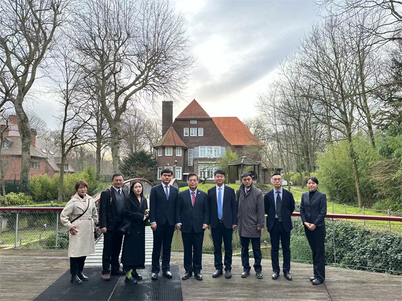 2024年1月,我校青年教师考察团抵达荷兰,在中华人民共和国驻荷兰王国大使馆受到苏光明参赞的热情接待。校长助理王照伟教授在座谈会上就学校的办学历程和育人特色等情况做了说明。