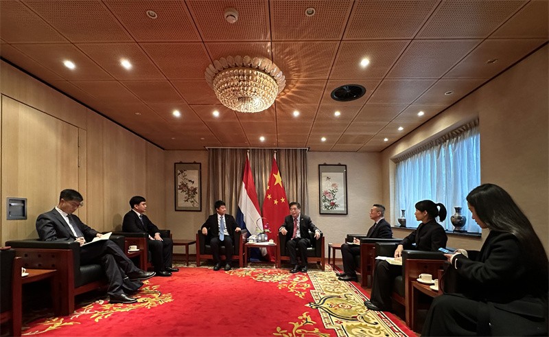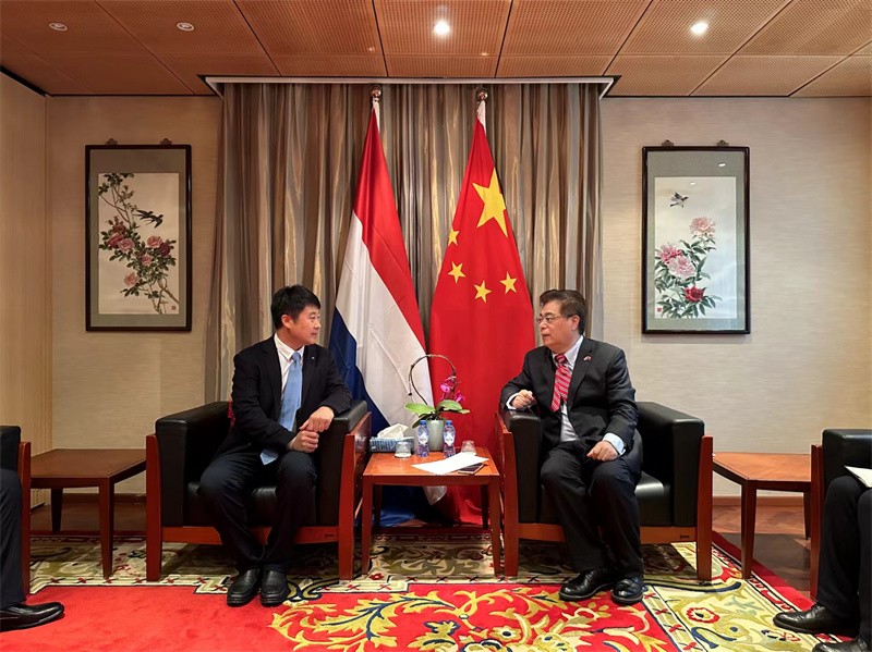 (考察团代表与中华人民共和国驻荷兰王国大使馆人员座谈)