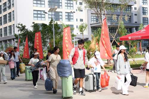 为保障2025迎新工作高效有序推进,学校各职能部门提前谋划、通力协作,从氛围营造到服务保障,全方位为新生打造便捷、温馨的报到体验。校园内,校门、主干道、迎新现场及宿舍区等关键区域均布置了鲜明的迎新标识,浓厚的欢迎氛围扑面而来;校外,学校在北海车站、机场提前设立迎新服务点,安排专线接送车辆,确保新生安全抵达校园。