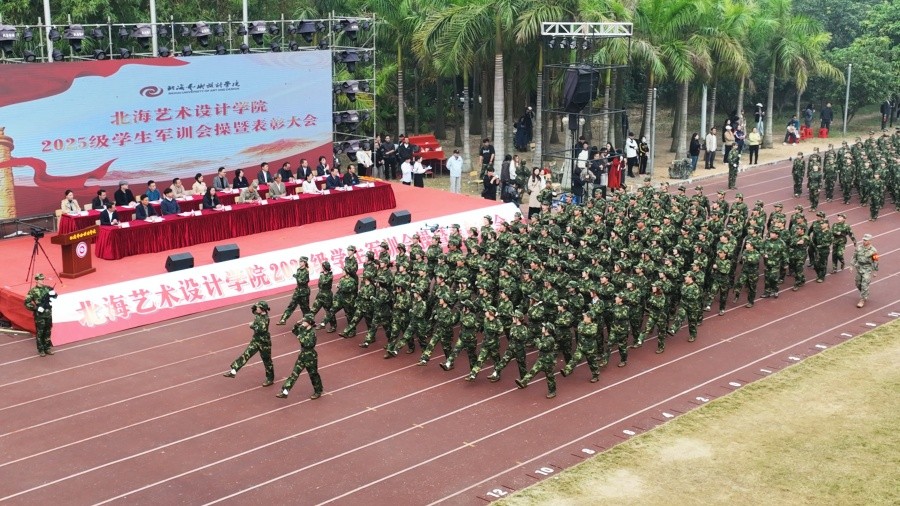 12月7日上午, 我校2025级学生军训会操暨表彰大会在西校区操场举行。北海市海城区人民武装部部长薛建伦,我校校长卢新华,常务副校长胡胜,党委副书记陈毅华、彭仁、刘承初,副校长陶立阳、刘朝雄、何煜,北部湾大学陶瓷与设计学院党委书记古雅峰及我校相关职能部门和二级学院领导出席大会。大会由副校长何煜主持。
