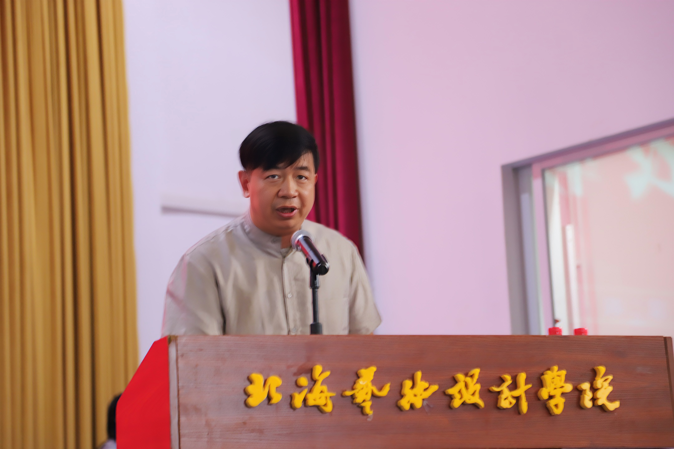 学校党委书记覃宪儒为表彰大会致辞。他指出,学校建校二十五年来,始终坚持社会主义办学方向,秉承“道德为本,艺术求精”的办学理念和校训精神,落实立德树人根本任务,构建“北海—北京双城育人、名校名师双名引领”独特办学体系,在教育强国建设的新征程中稳步向前,人才培养成效显著、硕果累累。他强调,唯有将个人艺术理想融入强国建设的宏伟蓝图,青春才能迸发出最为璀璨的光芒。对此,他对广大学子提出三点期望:一是将“小我匠心”融入“国之大者”,让艺术创作贴合时代脉搏、服务国家文化产业发展与民族文化传承;二是在技术飞速发展的当下,平衡“技术奔腾”与“人文定力”,以真挚情感赋予作品温度,凸显艺术设计的人文内核;三是拓宽视野的同时,深耕文化根脉,在吸收世界优秀成果的基础上,推动中华优秀传统文化、地方文脉的当代转化,让作品兼具国际视野与中国气象、广西韵味。