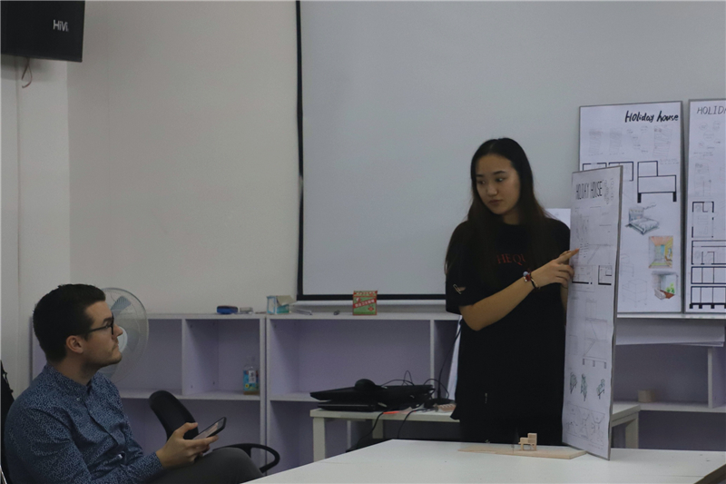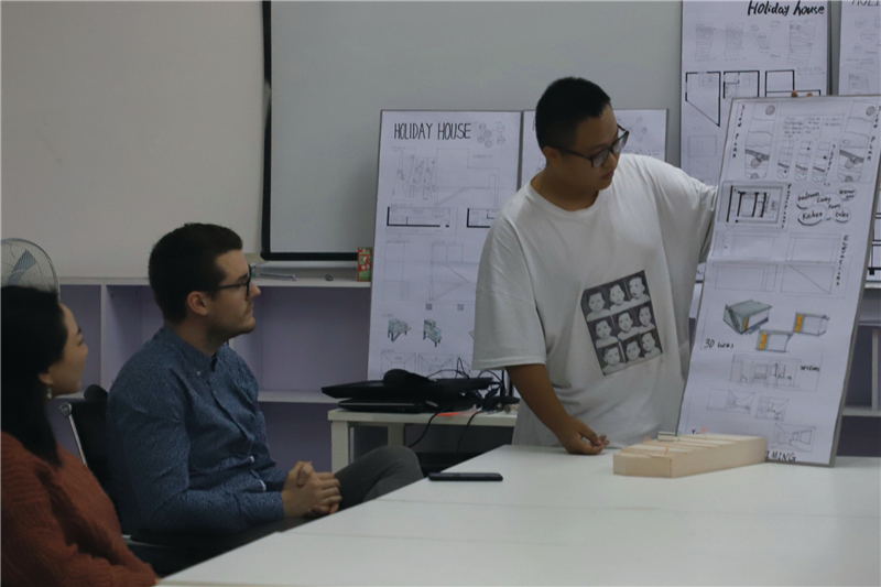 首先,安德拉斯博士介绍了课程内容和国际班的同学们在过去两周的学习表现,肯定了同学们的成绩,通过作品体现出来的设计能力符合佩奇大学的教学要求,随后国际班同学用英语进行了作品的展示与汇报。