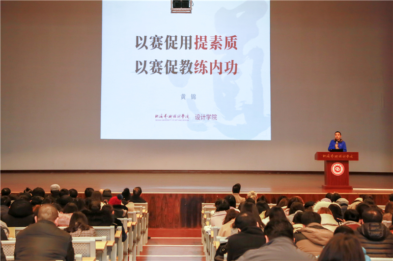 随后,各二级学院领导进行教学经验交流和成果展示。设计学院副院长黄锦以《以赛促用提素质,以赛促教练内功》为题,分享了设计学院组织学生参加专业设计大赛的经验。动画学院常务副院长陶立阳分享了动画学院卓有成效的教学管理经验,展示了实践教学取得的可喜成绩。环境艺术学院副院长王文刚介绍了校政企行协同育人提高教学质量的宝贵经验。