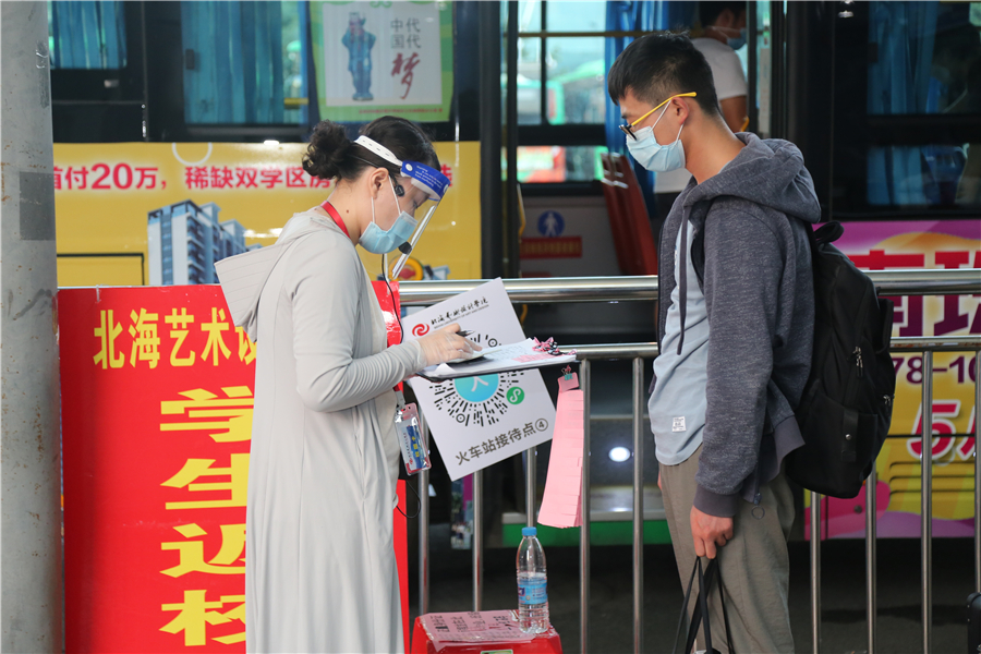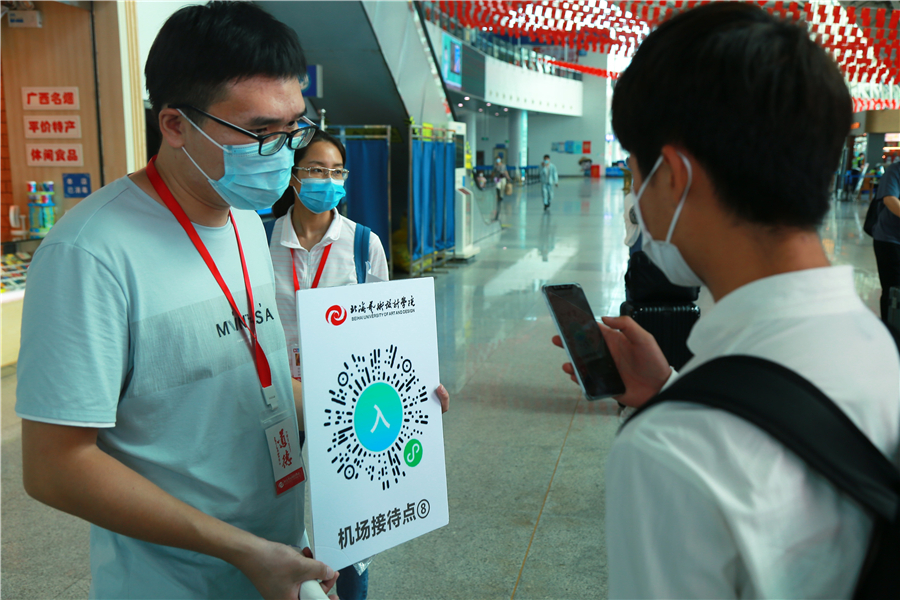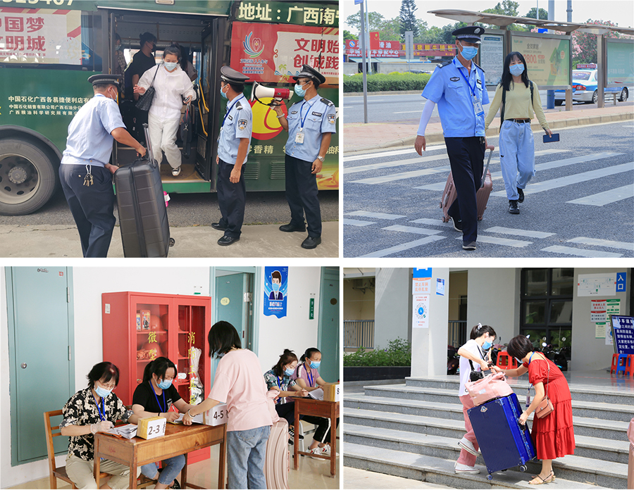 5月23日至24日,我校连续两天开展2018级学生返校接待工作。从清晨到夜晚,从机场、火车站到学校,测温、扫码、核验身份、引导上车,顺利完成“点对点”接送学生到达学校。在工作人员引导下,学生在校门口经过“一消二看三测四扫五核”顺利完成报到手续,现场秩序井然,各环节工作衔接有条不紊,全体工作人员细致认真,热情饱满。