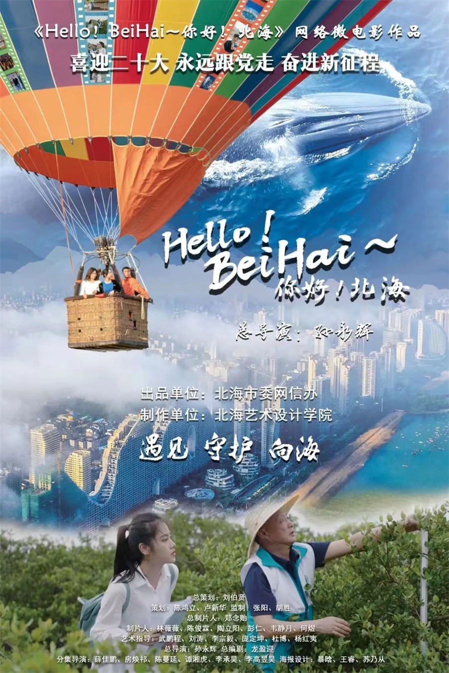 北艺师生先后完成设计北海市创建文明城市标识系统、宣传海报、城市文化景观等设计,广泛应用于北海市的机场、车站、码头、社区等全市的街头巷尾,助力北海全国文明城市创建;完成了北海首座城市英雄塑像——“珠城勇士”骆春伟烈士塑像;与市委宣传部、市教育局共同完成建党100周年献礼片网络电影《唱给海的歌》,影片在中国教育电视台、爱奇艺、今日头条、优酷、抖音等多家平台播出,在第二届亚洲华语电影节、中国高等院校影视“学院奖”、2021年国际大学生微电影盛典等大奖赛上获得多项荣誉;与市委网信办合作的《Hello!Beihai你好!北海》网络微电影作品,多角度呈现了品质北海,魅力北海的新气象;与广西阔迩登文化传媒有限公司校企合作的动画片《海上丝路南珠宝宝》在央视少儿频道黄金时段播并获多个自治区奖项;与合浦汉代文化博物馆挂牌成立实践教学基地、美育教学基地,利用文创产品推广“海丝"文化;在建党100周年之际,把服装秀场搬到北海百年老街,为游客呈现一场时尚与文化交融的奇妙体验之旅;在“机关支部进乡村,商标标准品牌行”产业扶贫活动中,师生设计商标58件被采用注册;为疍家小镇、赤西村、大田村设计绘就外墙和园林景观,助力其成为网红文旅名片;为北海企业进行产品包装设计、产品升级,弘扬本土特色文化......北艺,已成为推动北海文化发展的重要助力,也成为北海在全区甚至全国教育界竖起的一面特色旗帜。