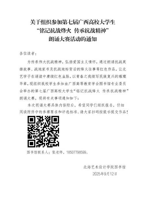 关于组织参加第七届广西高校大学生“铭记抗战烽火 传承抗战精神”朗诵大赛活动的通知