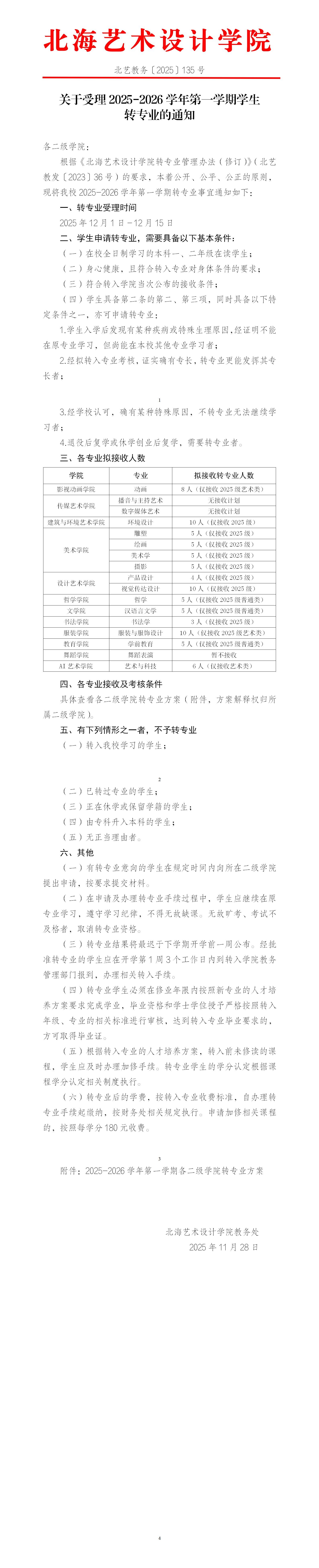 2025-2026学年第一学期服装学院转专业工作方案.doc