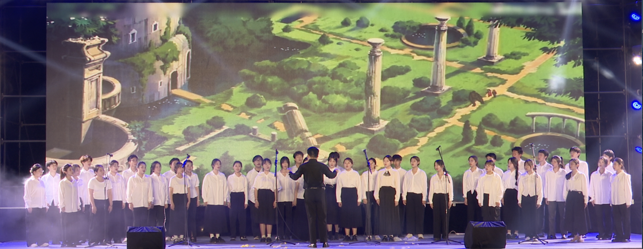 动漫配音《长安三万里》 在“悦动青春”篇章中,《英雄联盟串烧》将青春与游戏热舞完美结合,展现了年轻人的活力与热情。舞蹈《聊斋》则带领观众踏入了一个神秘而又迷人的世界,感受着那些古老的传说和神秘的故事。《动漫歌曲串烧》更是带领观众重温了《灌篮高手》《哪吒》等经典动漫的旋律,让人热血沸腾。 走秀《第五人格》在荒废已久的庄园拉开帷幕,为我们带来一场视觉盛宴。 最后,“薪火相传”篇章以《天空之城》的旋律作为背景音乐,带领观众走进了那座梦想之城。 “一帧朝与暮,一帧爱与苦。那些青葱岁月间,玲珑少年已楚楚。”中国动画百年纪念曲目《美美》则以动人的旋律和真挚的歌词回顾了中国动画的百年历程,展现了民族动画气派的传承与弘扬。 随着中国动画百年纪念曲目《美美》的落幕,本次动漫晚会也在一片欢呼声中圆满结束,晚会结束,但热情还未散去;晚会结束,但传承仍在继续。希望北艺学子们能在甲辰龙年添上更多的精彩与回忆。(胡睿、钟佳怡、曹淳棋、李妍淇、左娇娇、陈晓仙、张志宽、杨子恒、孙浩宇、王静,沈思慧、马雅楠、肖远煜、李壮壮/摄) 动漫晚会演职人员合影留念《原神!启动》cos走秀