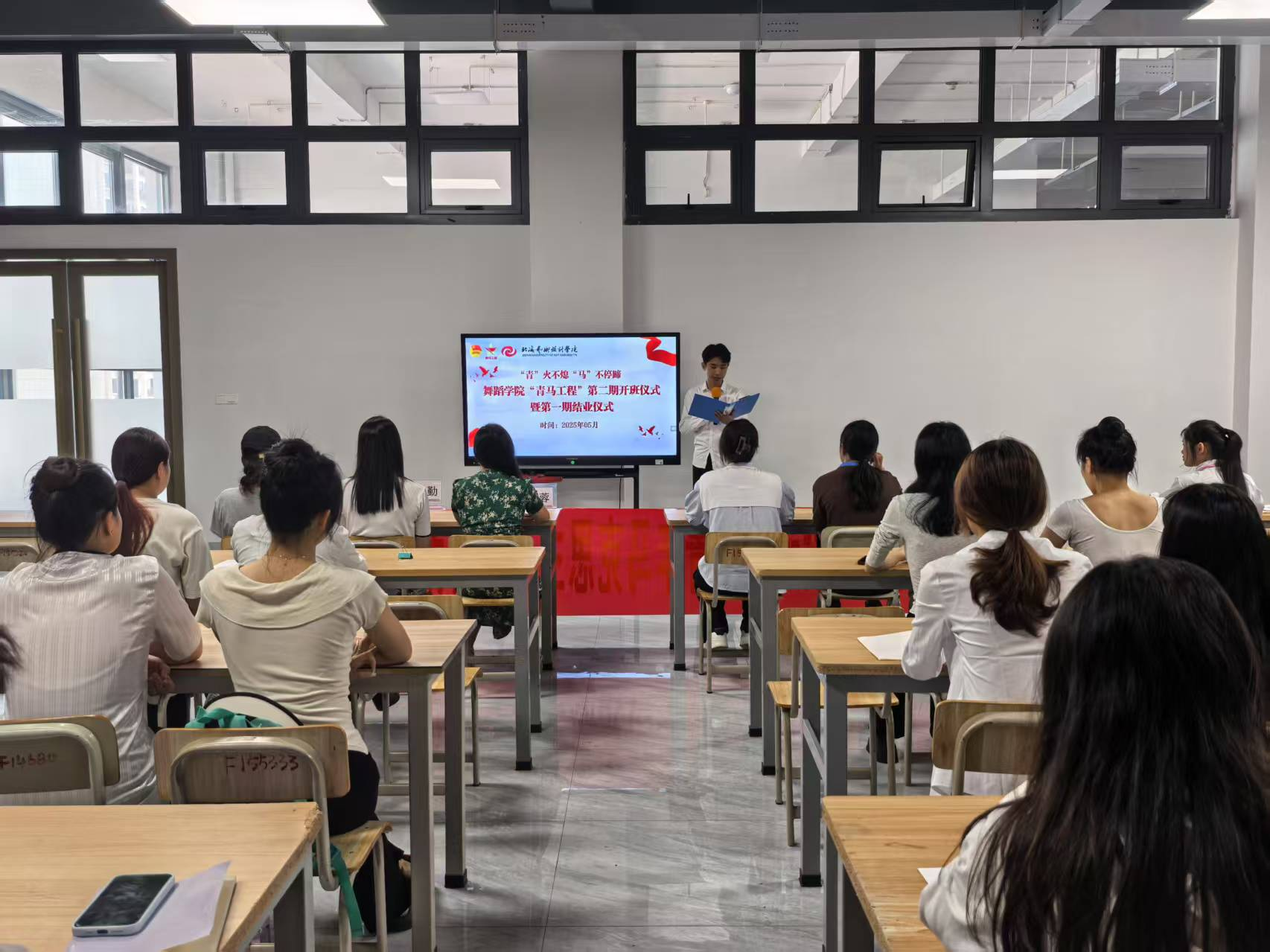 为深入学习贯彻习近平新时代中国特色社会主义思想和党的二十届三中全会精神,进一步加强对青年大学生的思想政治引领,着力为党培养和输送坚定的青年政治骨干。2025年5月7日,舞蹈学院于南校区艺德楼311举办了第二期青马工程开班仪式暨第一期结业仪式。