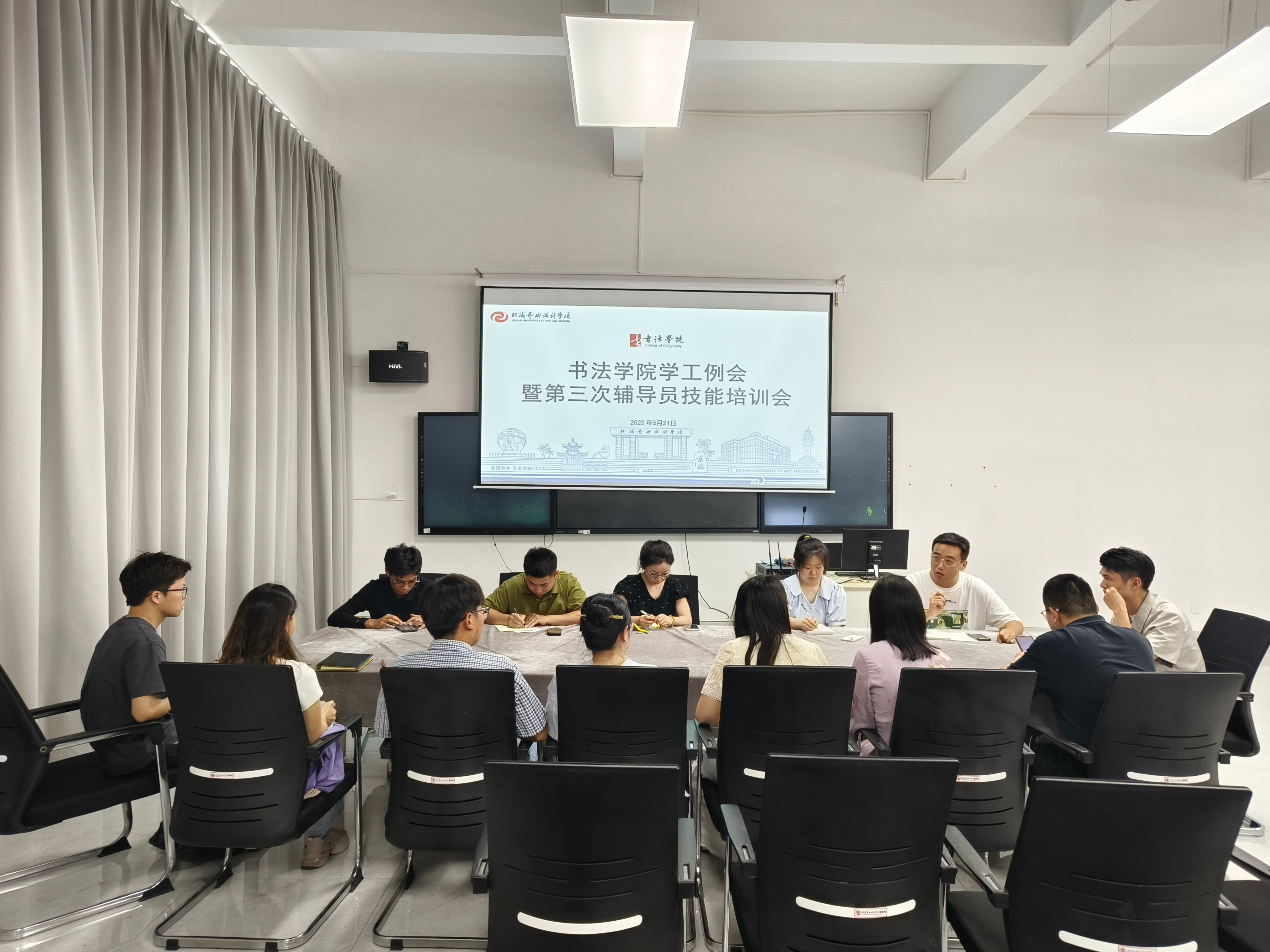 本次学工例会暨辅导员培训会的成功召开,不仅是对前期工作的有效总结和未来工作的清晰规划,更是一次统一思想、凝聚共识、提升能力的宝贵机会。通过交流研讨和技能培训,全体学工人员进一步明确了工作方向,增强了自身责任感,书法学院学工队伍将以此次会议为契机,以更加饱满的热情、更加务实的作风、更加专业的素养,用心用情用力服务学生成长,为培养德艺双馨、担当民族复兴大任的书法艺术人才贡献力量。(高刚刚 摄)