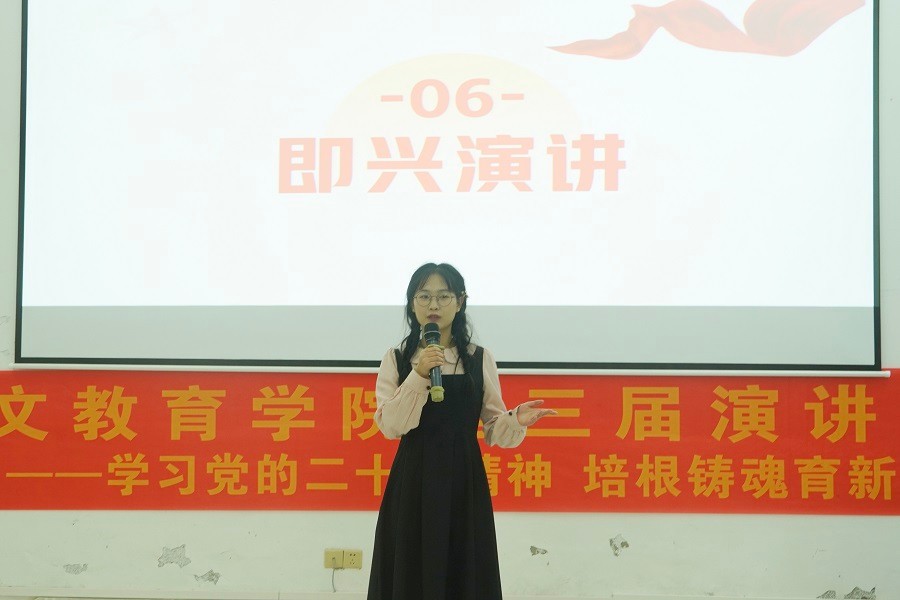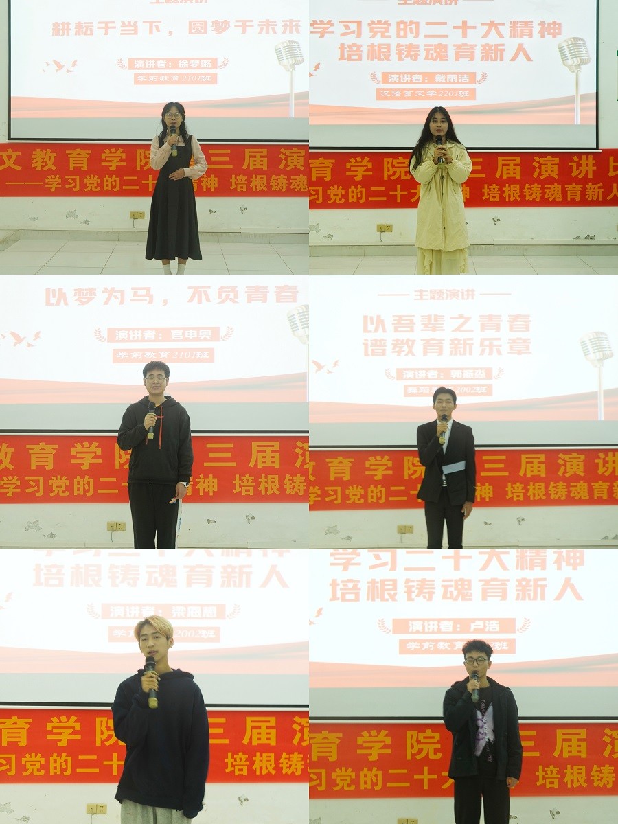 “学习党的二十大精神 培根铸魂育新人”第三届师德师风演讲比赛圆满落幕,此次演讲比赛,人文教育学院学子进一步领悟了党的二十大精神。同时,也加强了对未来教师职业的了解,激励未来教师厚植教育情怀。(摄影:刘媛媛、黄心怡)