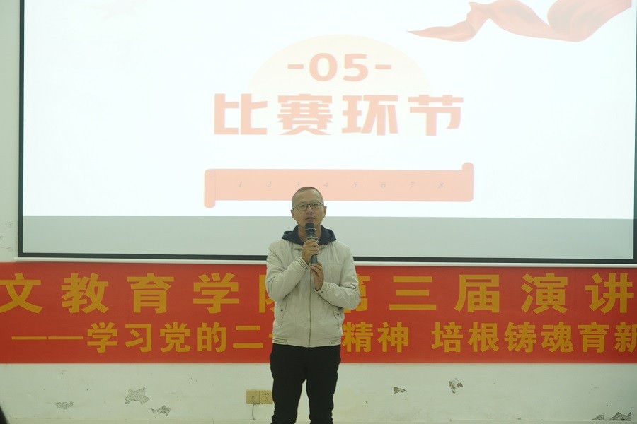 王斌副校长为比赛致辞,他强调了师德师风的重要性,希望选手们通过本次演讲比赛,在提高演讲能力、表现能力的同时,加强专业认知,提升综合素质。
