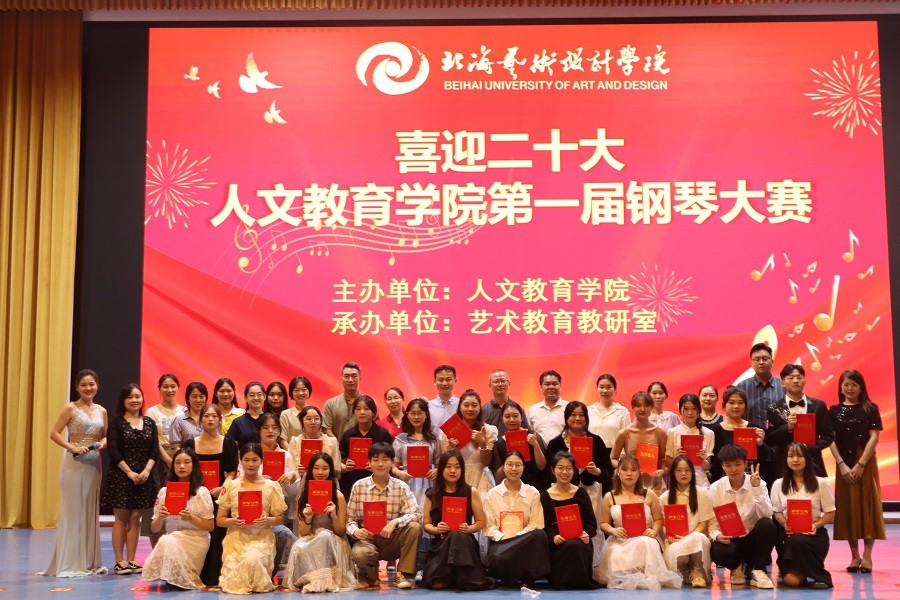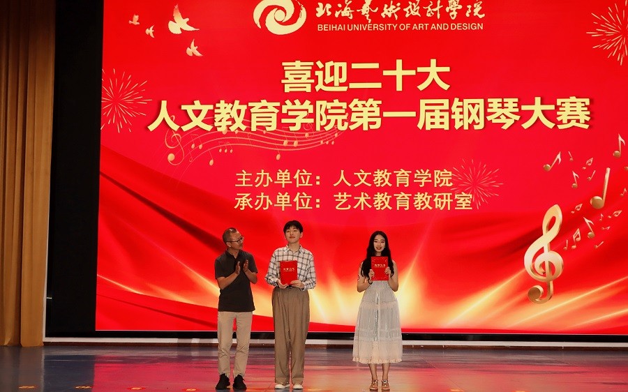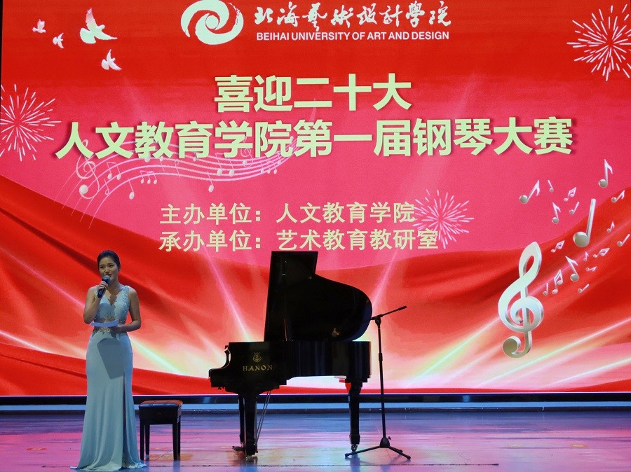 金秋十月,硕果累累2022年10月7日19时,由北海艺术设计学院人文教育学院主办,艺术教育教研室承办的“喜迎二十大--人文教育学院第一届钢琴大赛”,在西校区大礼堂隆重举行。北海艺术设计学院副校长王斌人文教育学院党总支书记刘承初院长熊秀峰副院长李水亮副院长李谦总支副书记邓欢,应邀出席大赛