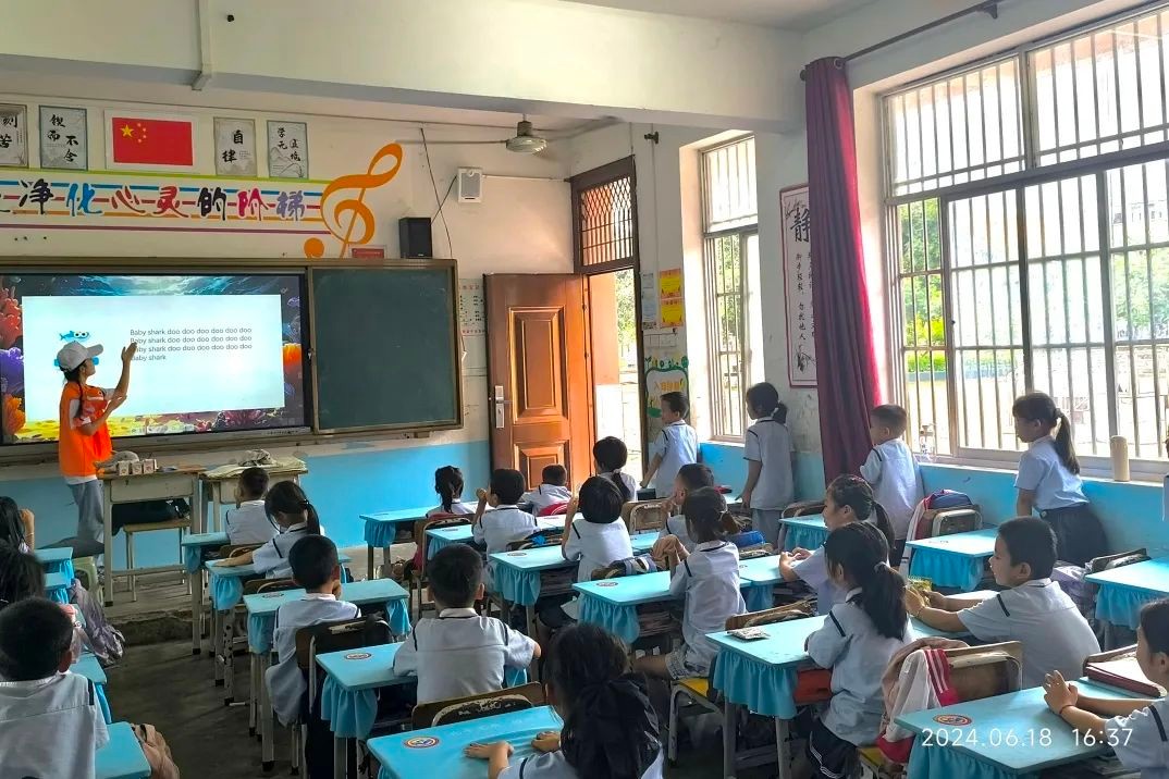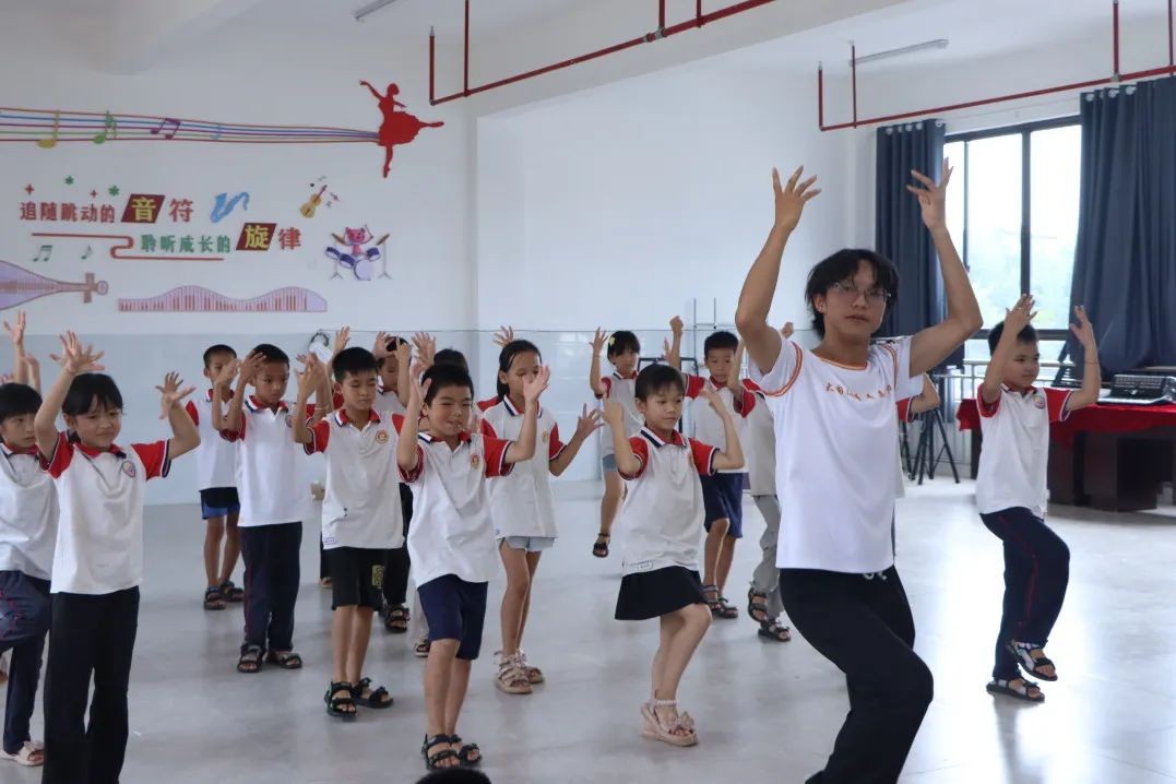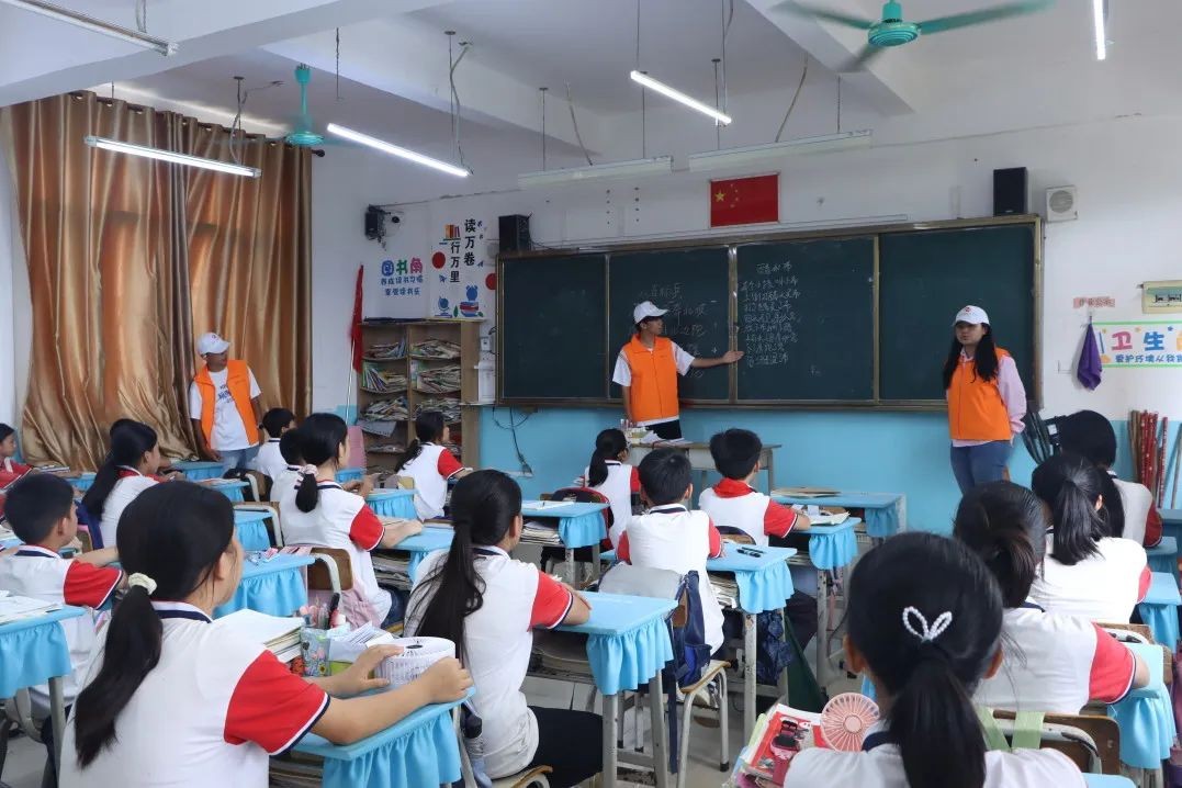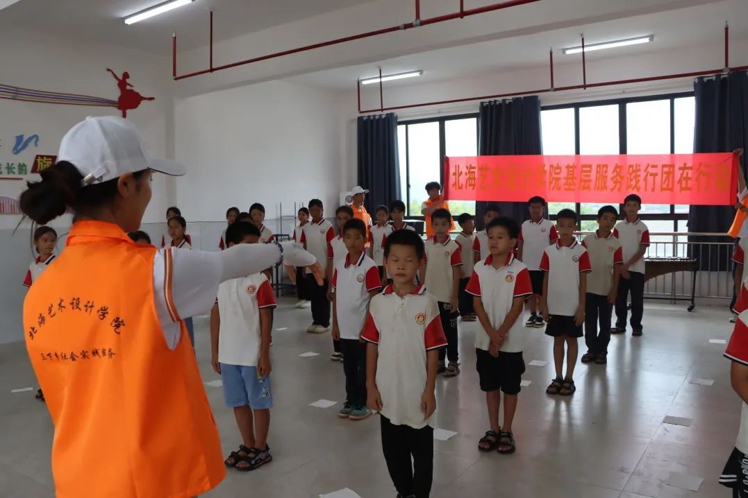 6月17日-19日下午,基层服务践行团在崇左市下冻镇北耀完全小学开展了口才课、手工课、舞蹈课、美术课、音乐课等丰富多彩的课程,同学们将自己所学的专业知识技能教授给北耀完全小学的孩子们,为边陲小学的孩子们带去别具一格的艺术课堂。