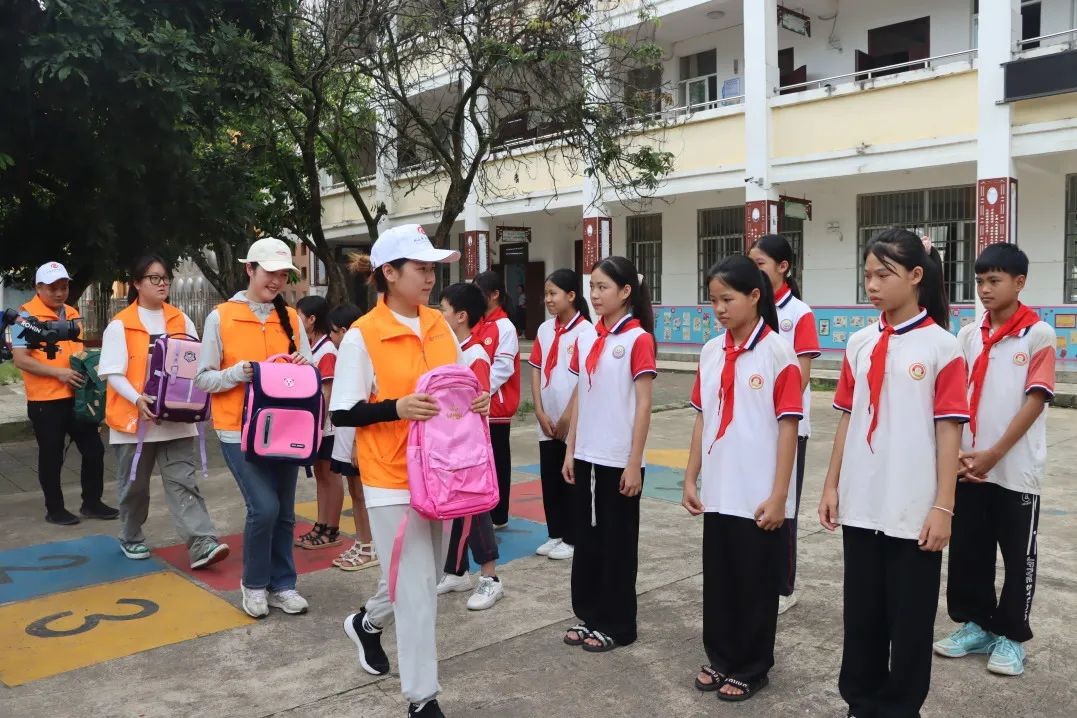 接着,践行团的成员们为小朋友们送上学习物品,并和孩子们深入交流,询问他们的日常生活和学习基本情况,以及当地的民族文化。