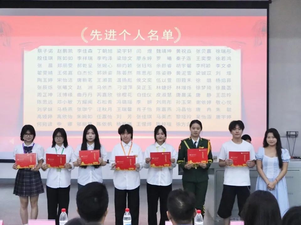 团委副书记杨美琪为先进个人代表颁发证书,并与获奖代表合影留念。他们的努力和贡献为学生组织的发展注入了新的动力。