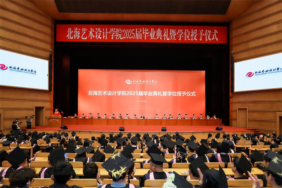 在熟悉的校歌旋律中送别北海艺术设计学院2025届毕业生。祝愿广大毕业学子顺利开启人生新征程,永远珍藏心底的纯粹与美好,带着校园积淀的学识,以无畏之姿与笃定信念迎接更高远的挑战。今后,脚下之路皆踏得沉稳而坚定,每番拼搏皆能满结硕果,山高海阔,前程似锦,未来皆可执笔绘就璀璨新章!(北京实践基地办公室/供图)