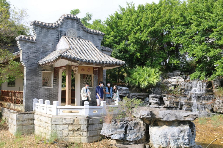 本次揭牌仪式结束后,北艺书院师生参观游览北艺书院,在精巧别致、古色古香的园林建筑里,赏花草树木,观鱼虫嬉闹,浸书墨之香,品文化气息。(陈真考/摄)