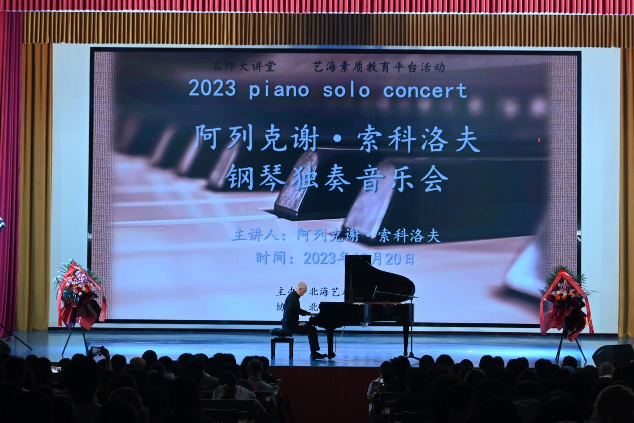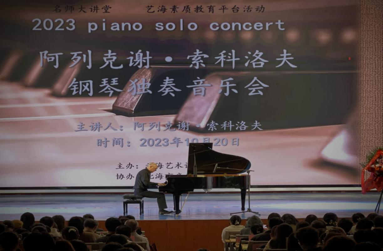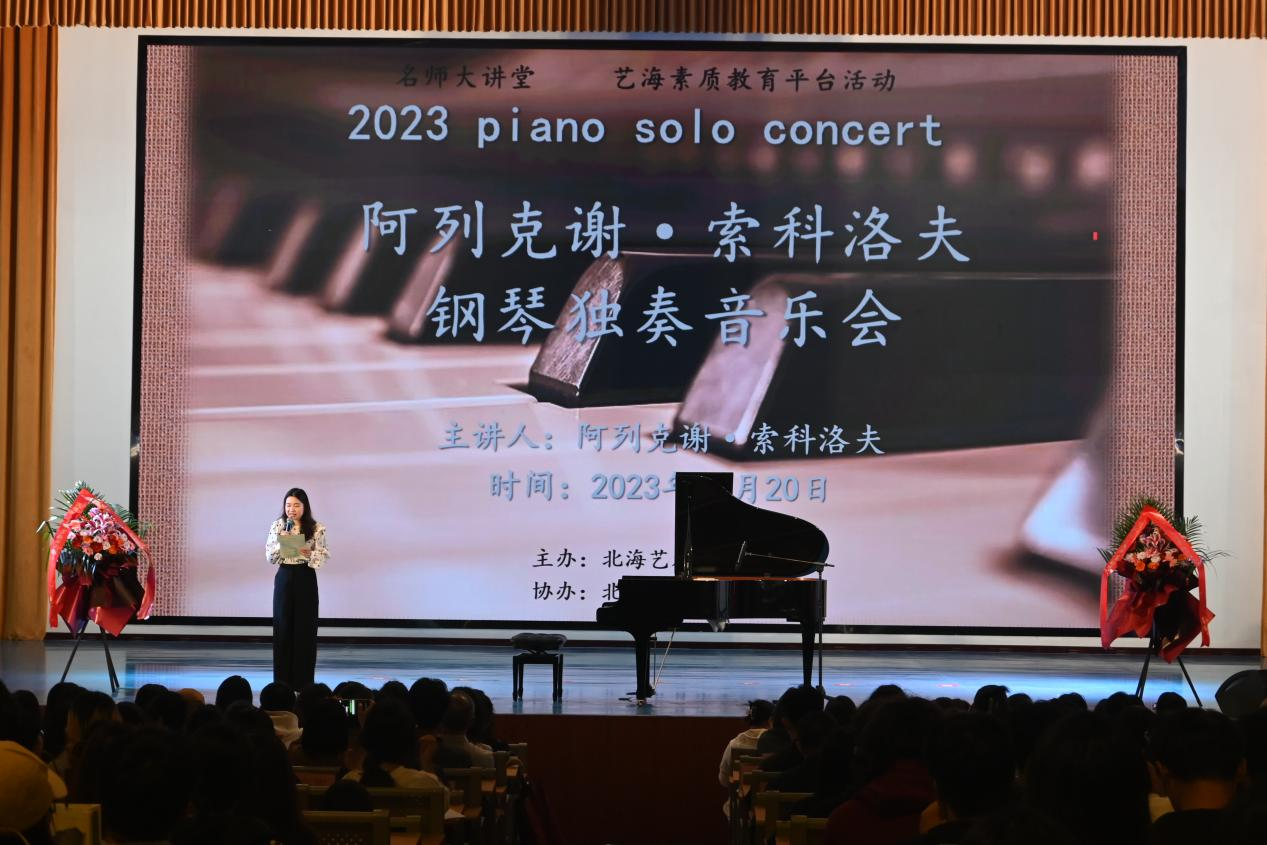 1020日晚,阿列克谢•索科洛夫教授我校西校区大礼堂举办个人钢琴独奏音乐会。当晚,北海艺术设计学院总督学王斌北海市键盘学会会长龙康全人文教育学院院长熊秀锋副书记邓欢院长李谦等领导出席活动。本次音乐会人文教育学院艺术教育教研室张靖茜老师主持。